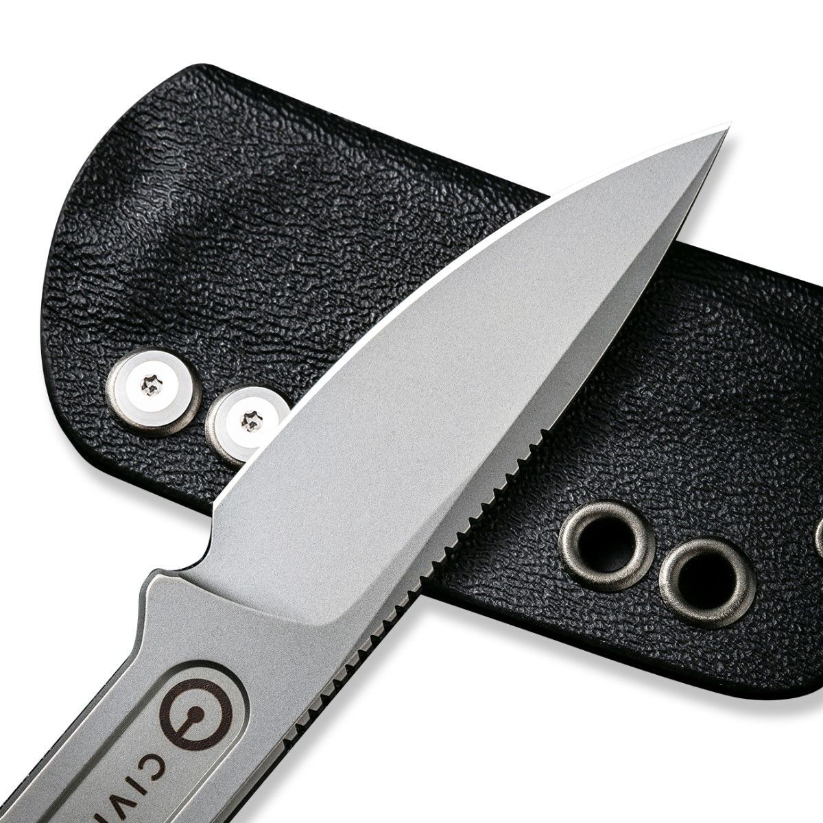Клинок имеет не только режущие, но и колющие свойства благодаря форме ножа drop point. Обух лезвия выступает в форме “капли”, как бы сужаясь к кончику ножа. Это помогает перенести давление на полную кромку ножа даже при резком введении лезвия в материал. Вместе с нейлоновым темляком и бусиной нож весит 28,7 грамма. По длине он также не превышает 12,6 сантиметров. Civivi Circulus идеально подойдет для выполнения тактических задач, во время практики бушкрафта, для вылазки на охоту или в обычный туристический поход.