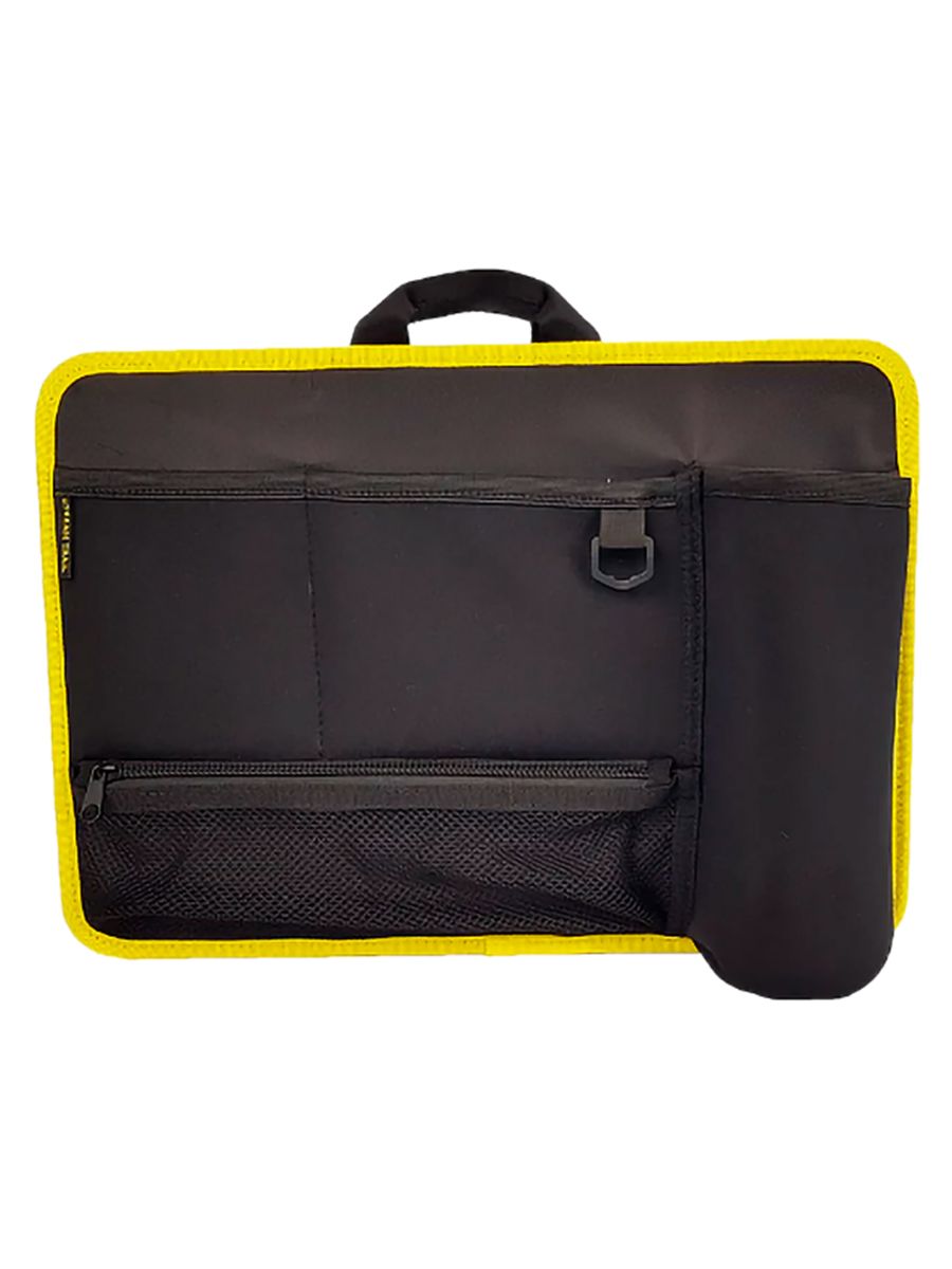 Предлагает множество карманов для упорядоченного хранения вещей. Оснащена большим карманом для ПК, двумя кармашками для мелочей, карманом на молнии из сетки для зарядных устройств, карманом для документов A4 и D-образным кольцом для ключей. Дополнительно имеет неопреновый держатель для бутылки, предотвращающий проливание жидкости, и ручку для легкого переноса.