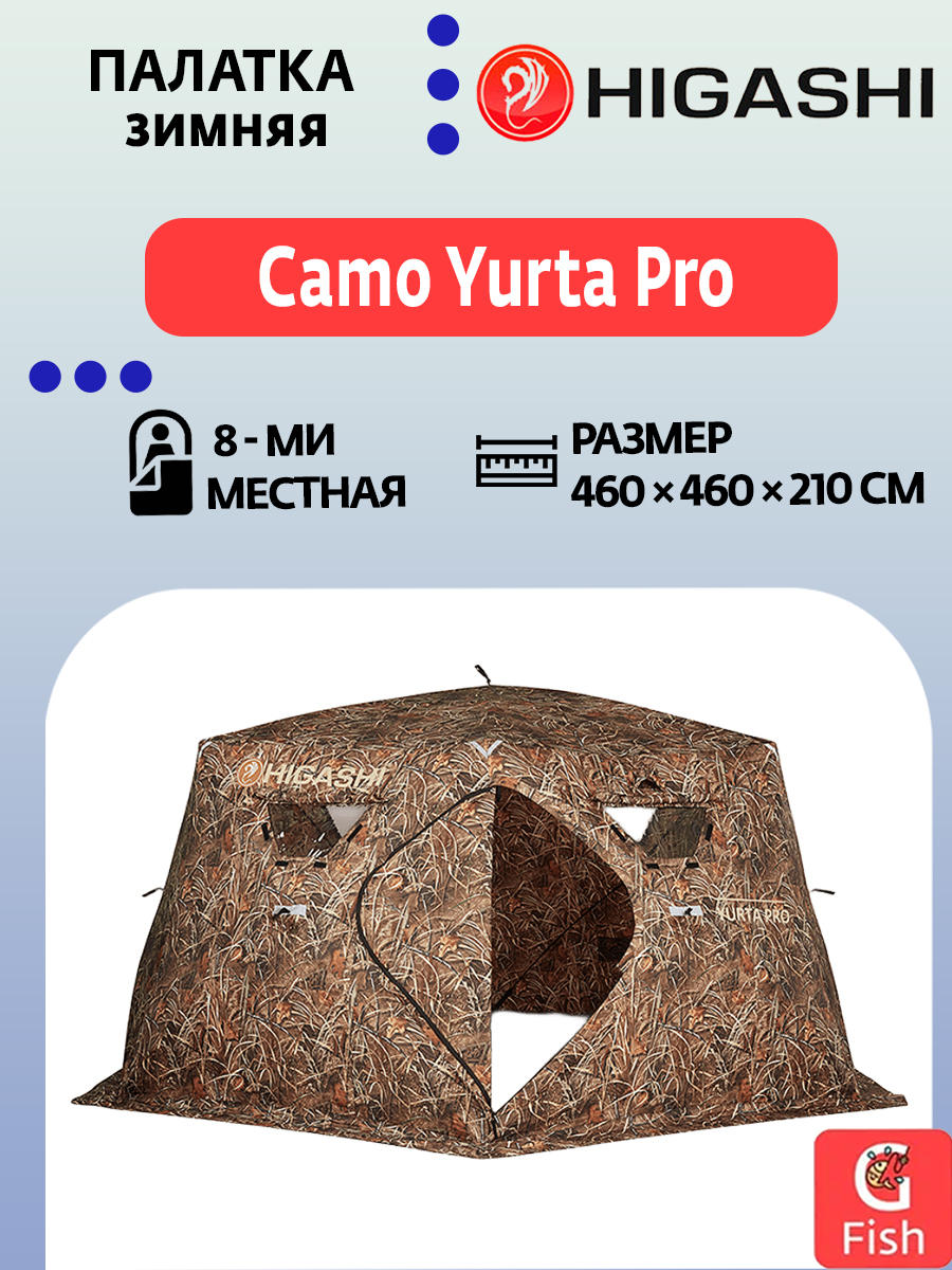 Трапециевидная утепленная зимняя палатка шестигранной формы, камуфлированный вариант.