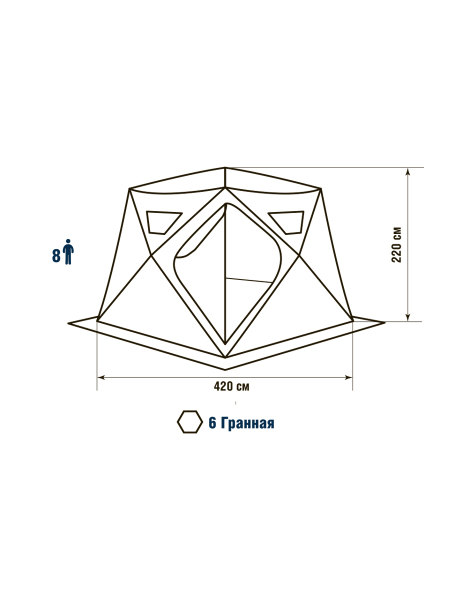 Увеличенная конструкция палатки позволяет оборудовать места для ночлега, кухни и склада экипировки, а также заниматься подледным ловом рыбы.