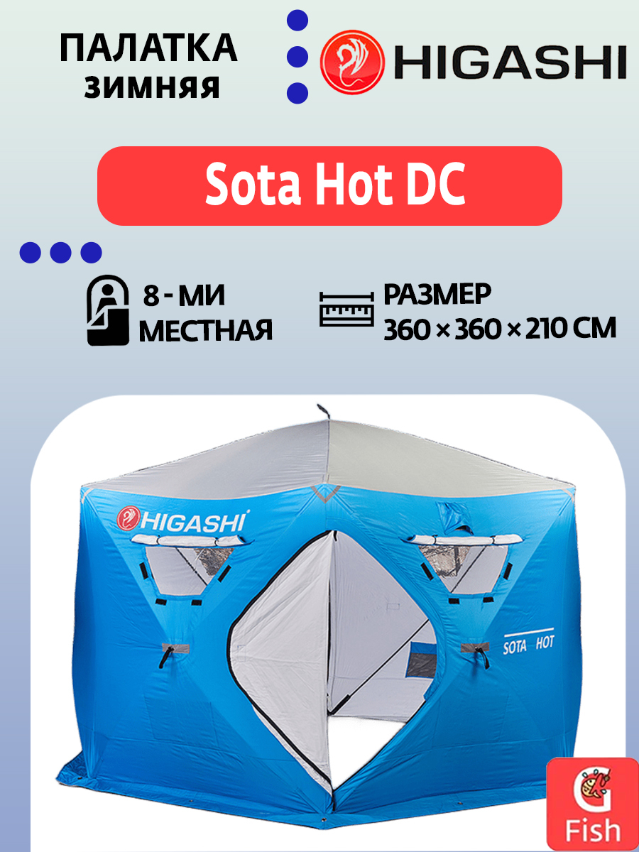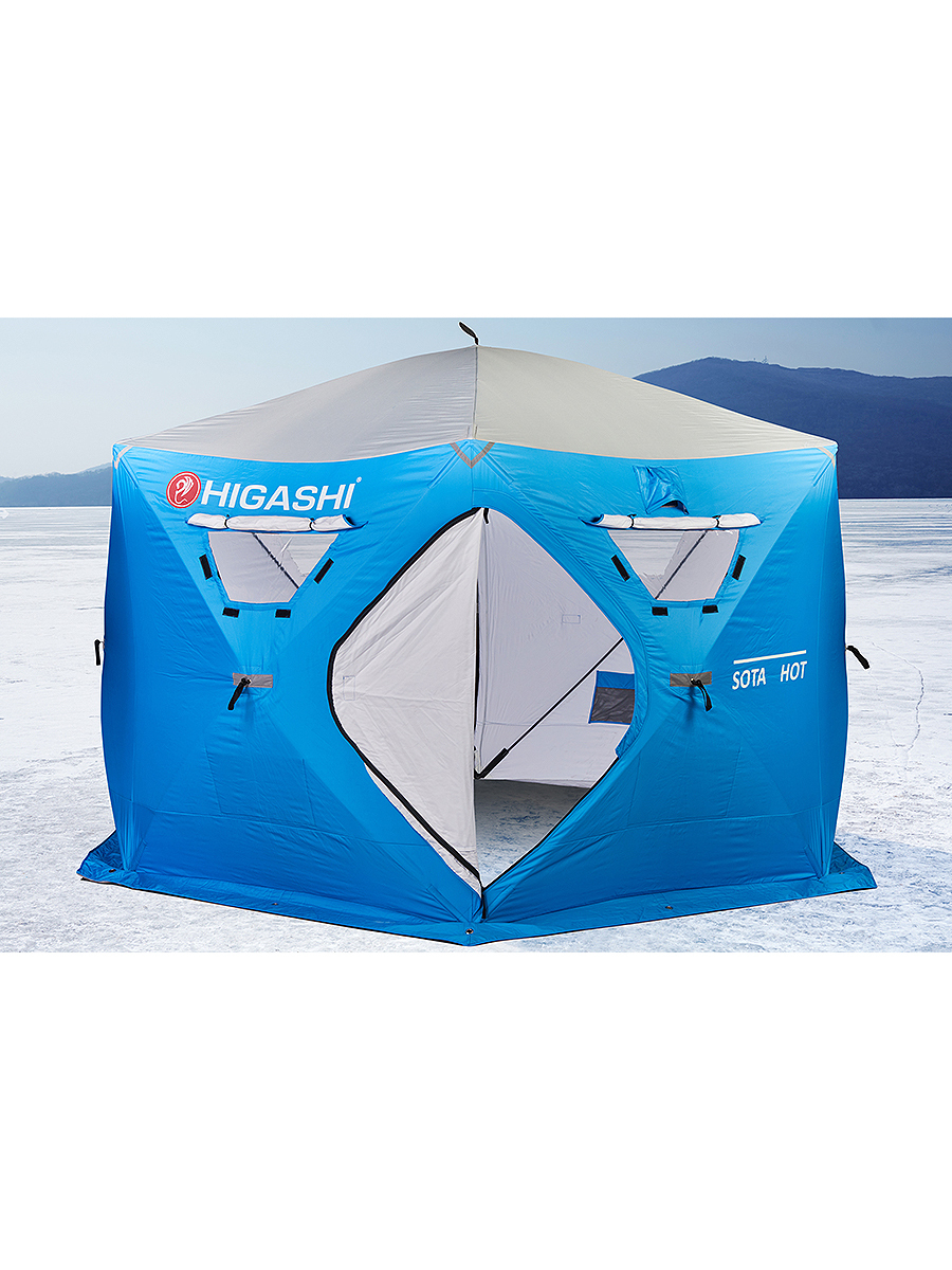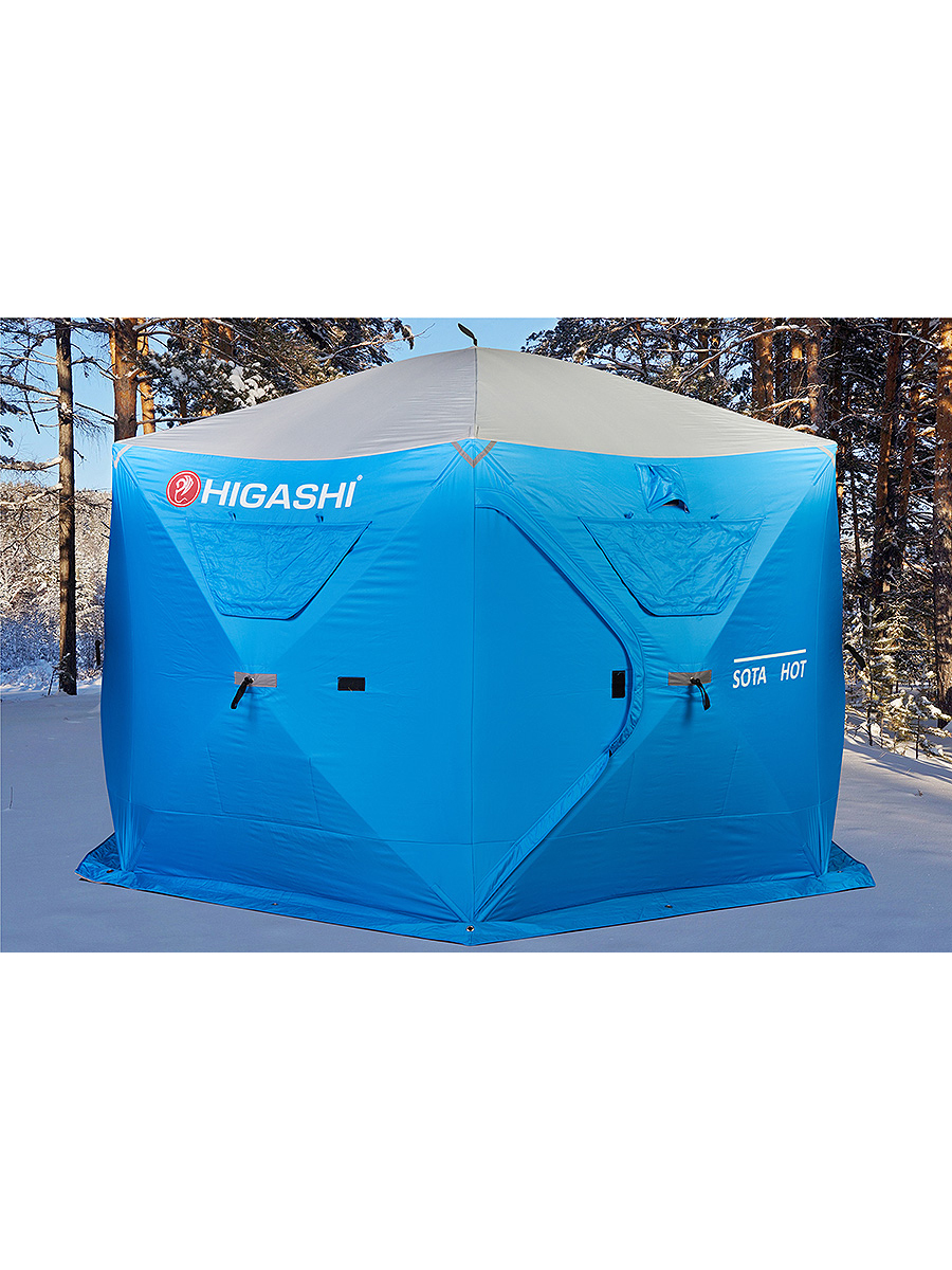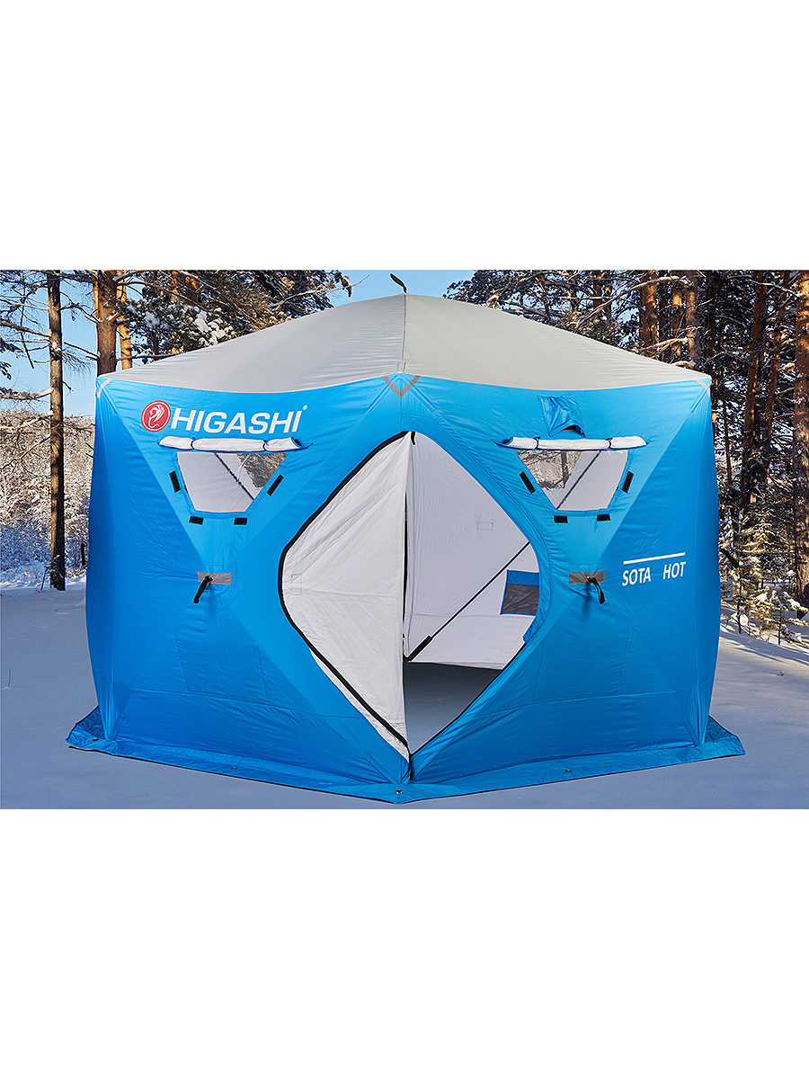 Зимняя утепленная палатка шестигранной формы Higashi Sota. Утеплитель палатки соединен с внешней и внутренней тканью при помощи ламинирования.