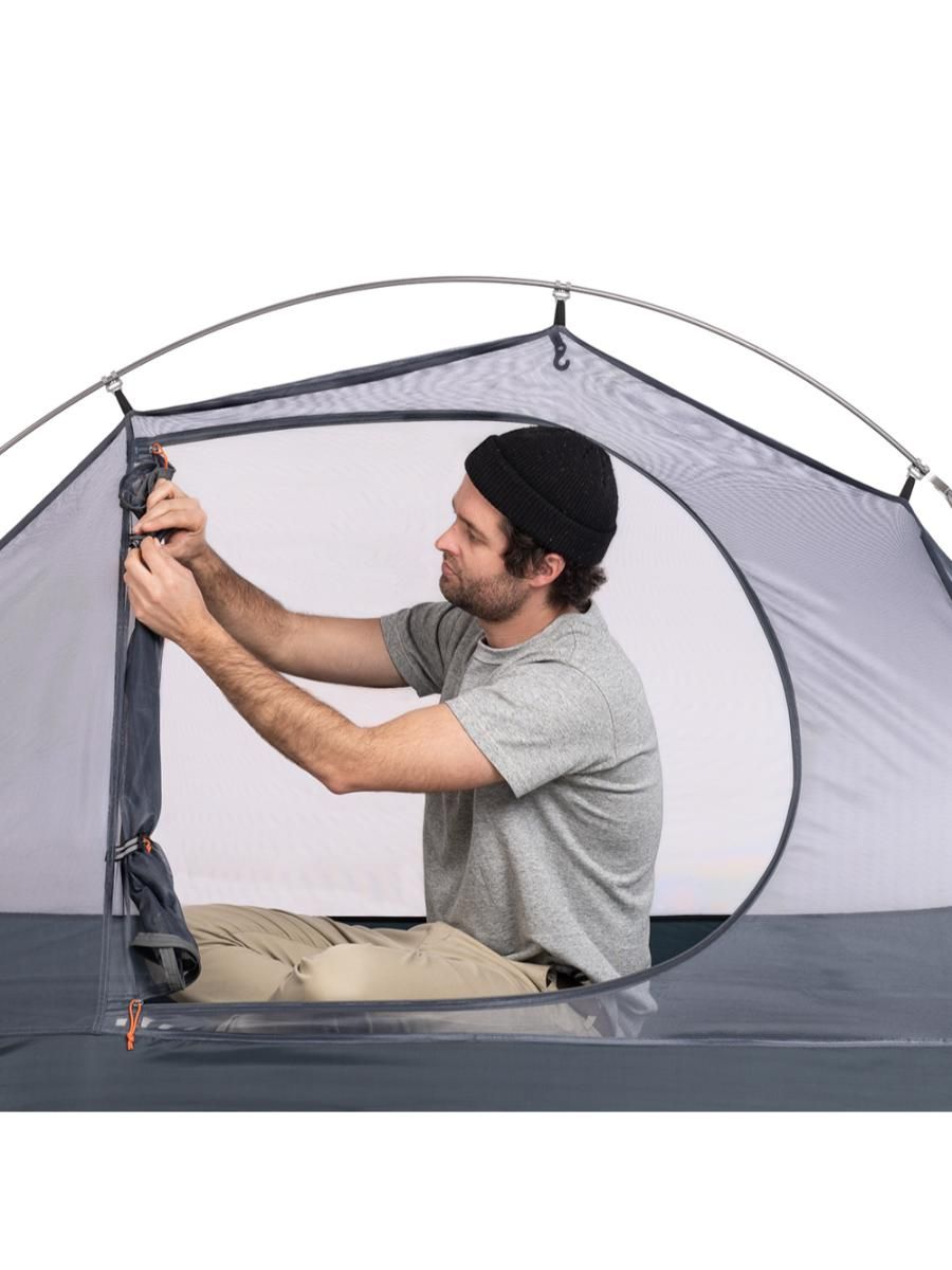 Палатка со встроенным ковриком имеет двухслойную конструкцию. Верхний тент изготовлен из прочного нейлона с ультратонким силиконовым покрытием. Внешний слой и коврик оснащены водонепроницаемостью 3000 мм. Это значение говорит о том, что палатка Naturehike NH18A095-D надежно защищена сверху и снизу, поэтому не пропустит воду даже во время сильного дождя.