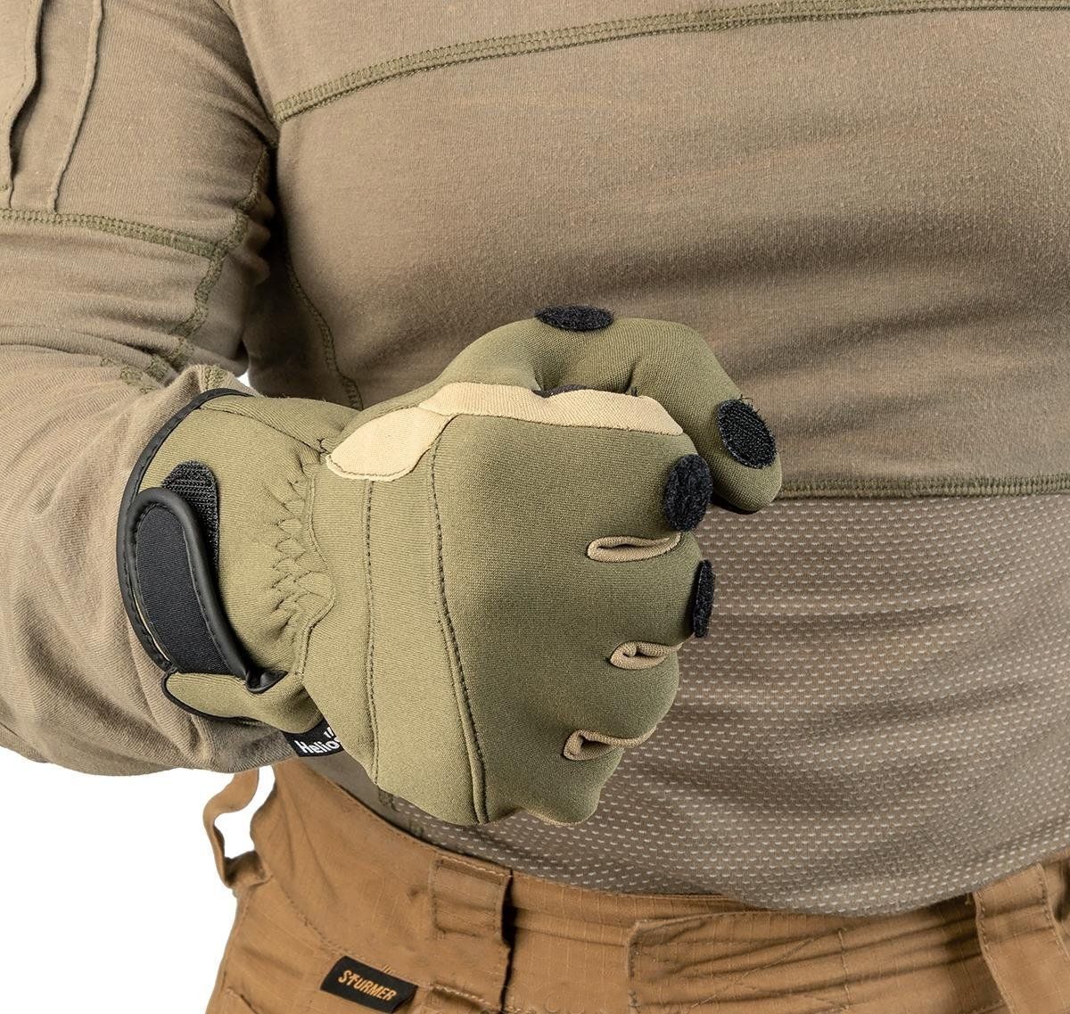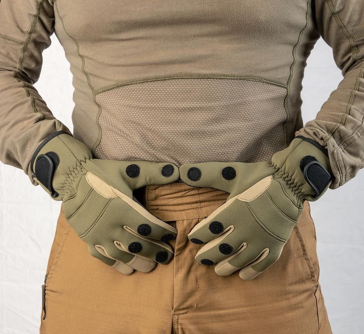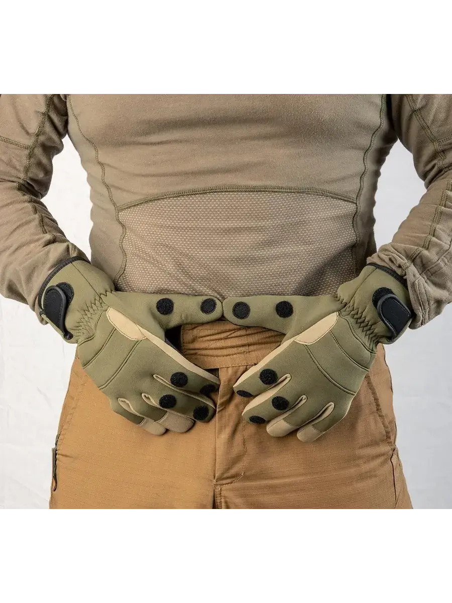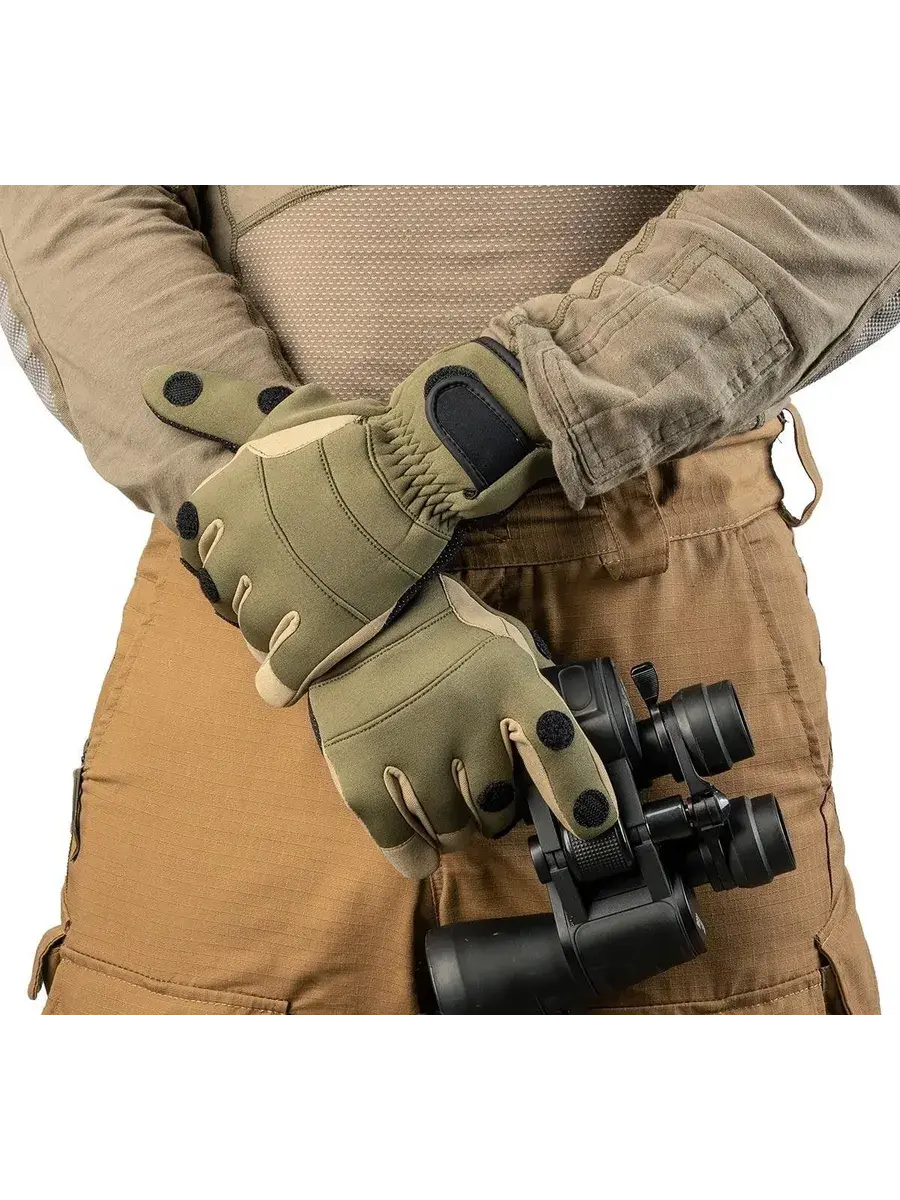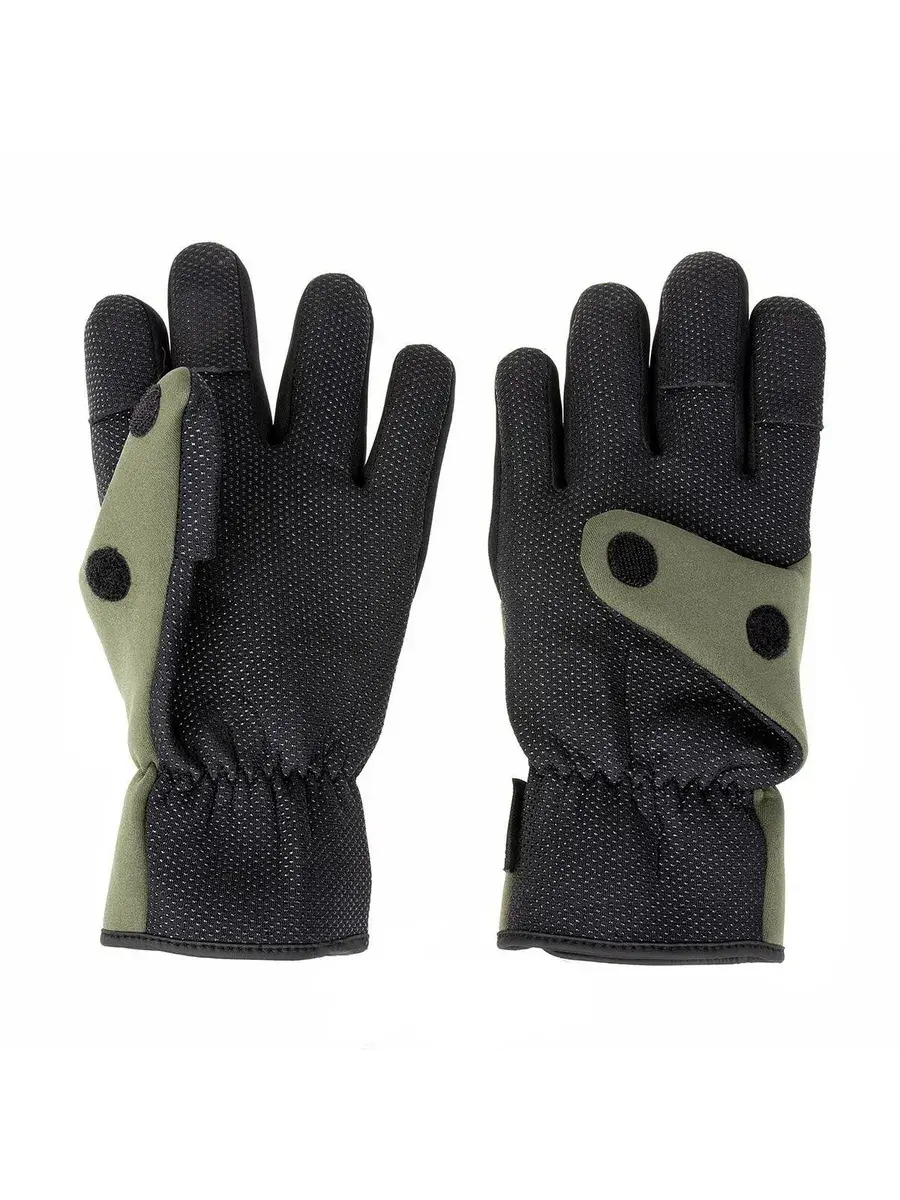 Перчатки рыбацкие неопрен. на липучке Helios (HS-HY-D13) Helios Перчатки из высококачественного неопрена обладают отличными влагозащитными и теплосберегающими свойствами, что позволяет использовать их на рыбалке в осенне-зимний период. Комфортная температура использования: до -5 °C. Анатомический крой обеспечивает максимальное удобство использования. Перчатки имеют нескользящее покрытие на ладонях. На каждой перчатке в паре имеется по три откидных пальца (большой, указательный и средний). Эластичные резинки в области запястий с дополнительной фиксацией на липучку. В качестве ткани, для клиньев между пальцами использован поликоттон (полиэстер 65%, хлопок 35%), который придает дополнительный комфорт и не натирает кожу.