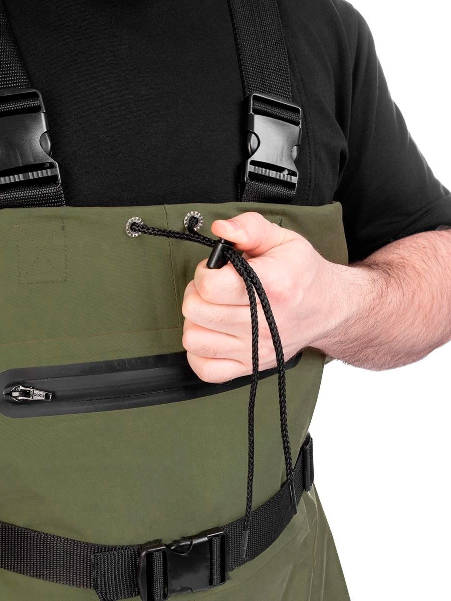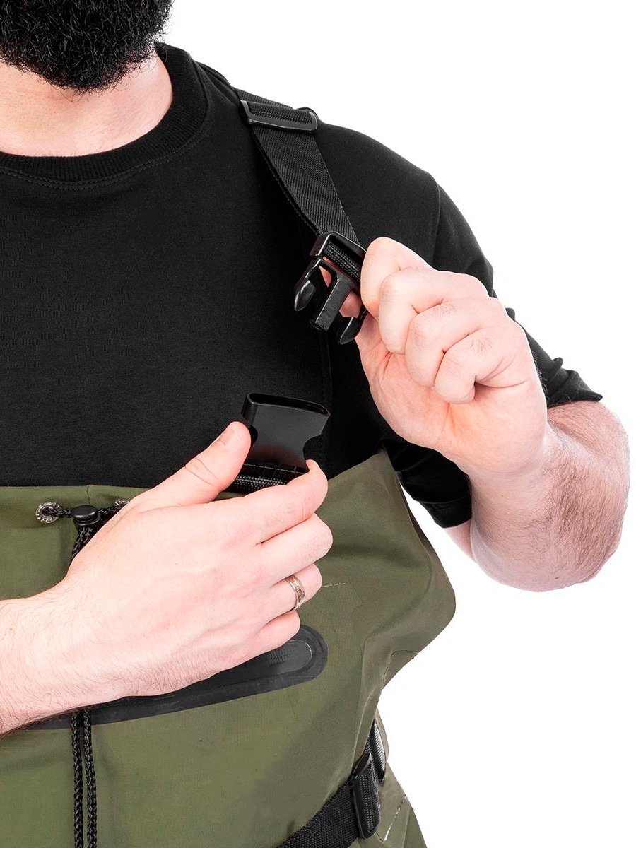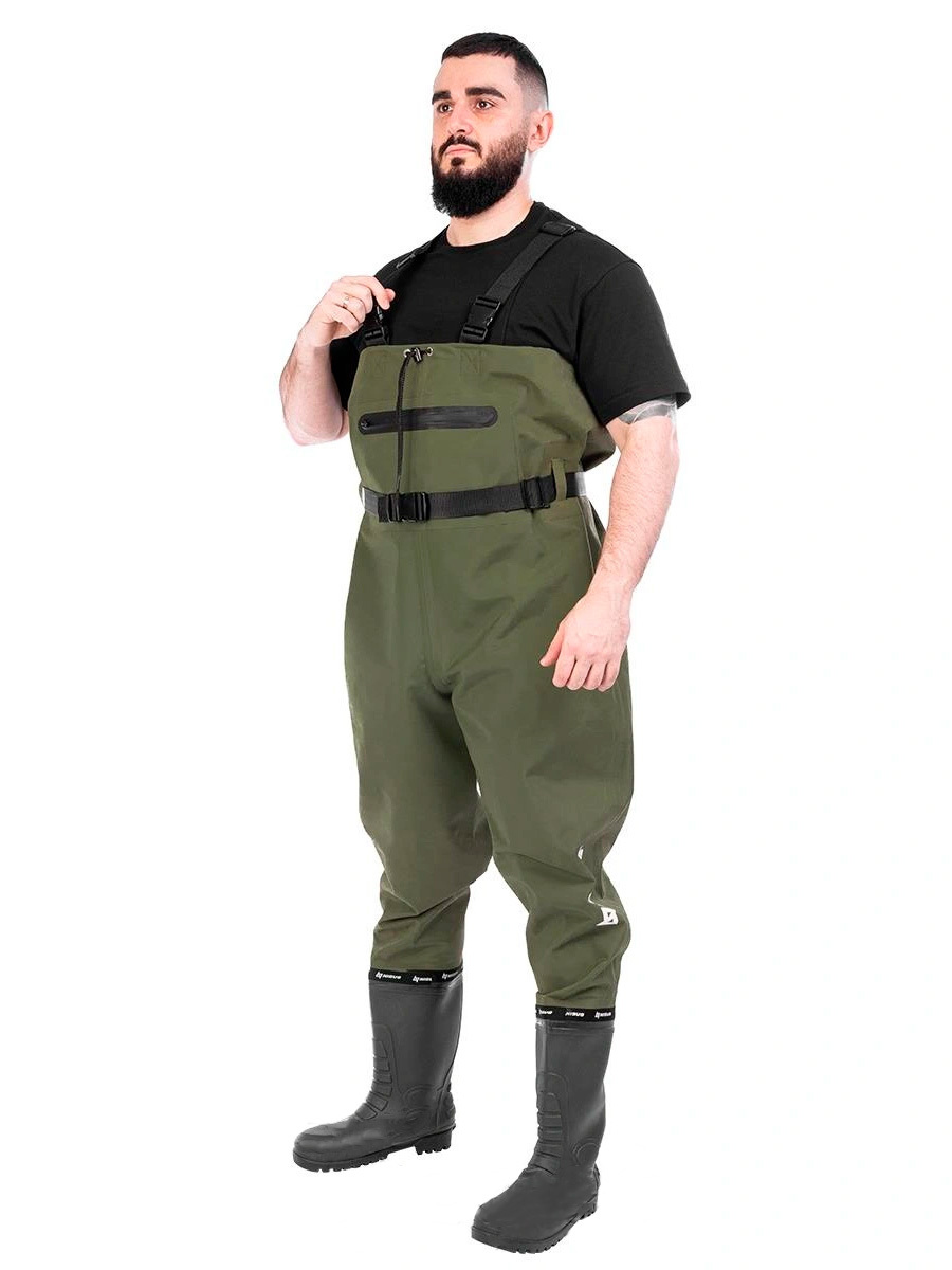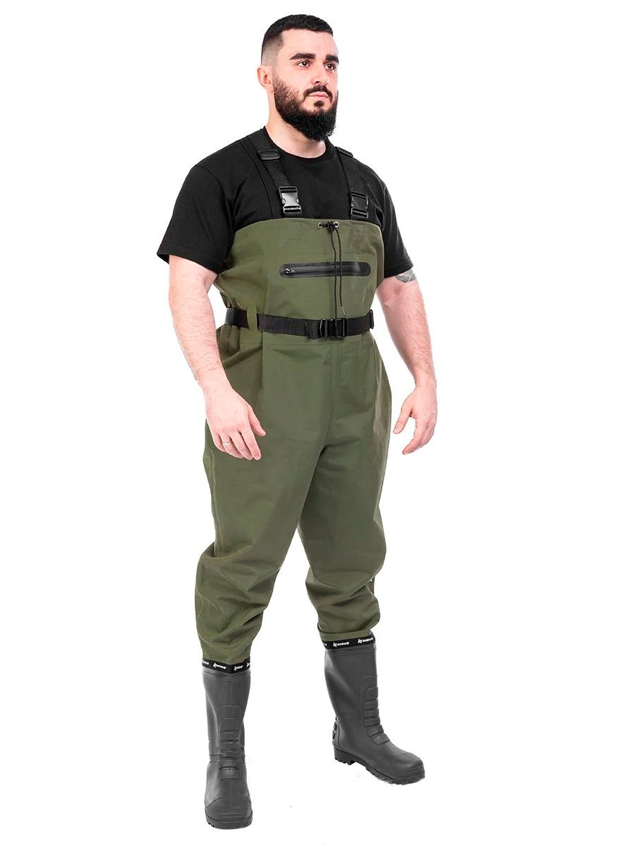 Полукомбинезон рыбацкий незаменим для любителей рыбалки с заходом в воду, утиной охоты, экстремальных туров на квадроциклах по бездорожью. Забродники для рыбалки мужские выполнены из комбинации материалов: нейлона, ПВХ и сетки, что гарантирует полную водонепроницаемость и даёт ощущение комфорта. Правильно подобрав нижний слой одежды, можно регулировать комфортную температуру ношения от -10°С до +25°С. Этот полукомбинезон подойдет для различных водоемов, и его можно использовать как летом, так и ранней осенью.