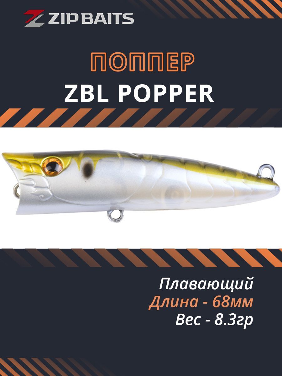 Поверхностная приманка, предназначенная для рывковой анимации. Во многом благодаря расположенному внутри тела вольфрамовому грузу MZ-19, в статичном состоянии ZBL Popper занимает наклонное положение под углом 25-30 градусов к поверхности воды. При рывковой анимации в стиле "поппинг" приманка за счет ярко выраженной вогнутой носовой части способна издавать живой булькающий звук, захватывая и «выплевывая» при каждом рывке вперед пузырек воздуха, тем самым привлекая хищника с дальнего расстояния. Кроме того, MZ-19 способствует правильной балансировке приманки при проводке, а также далекому и точному забросу. ZBL Popper оснащен двумя острейшими тройниками. Для предотвращения их сцепления, задний крючок имеет чуть меньший размер и верхнее крепление.