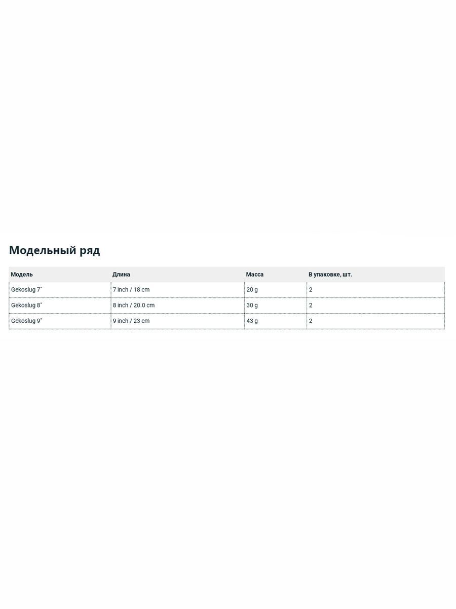 Gekoslug — приманка с округлой в сечении передней частью, рельефной «чешуйчатой» поверхностью и подвижным V-образным хвостиком.