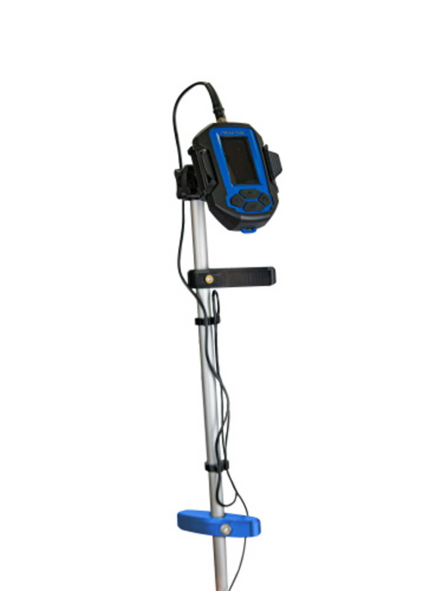 - зафиксировав датчик «в бок» и вращая ротатор, можно исследовать рельеф и объекты на расстоянии от лунки;