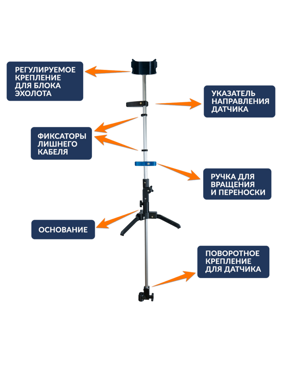 - надежное и морозостойкое крепление блока эхолота с регулируемым углом наклона;