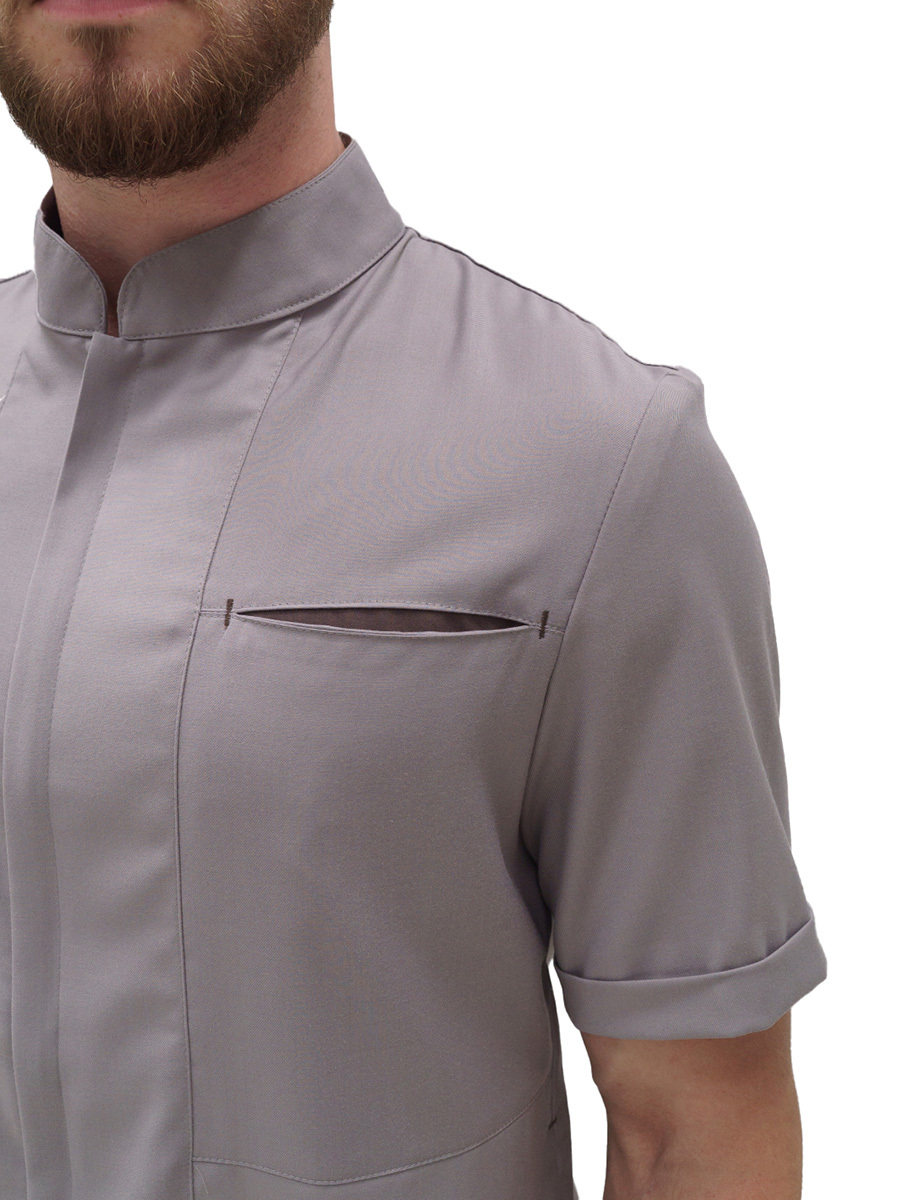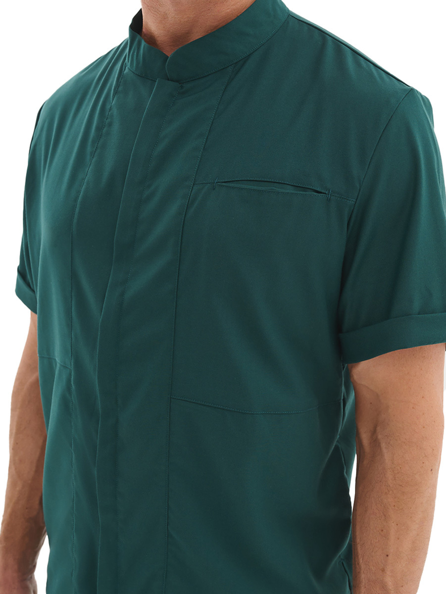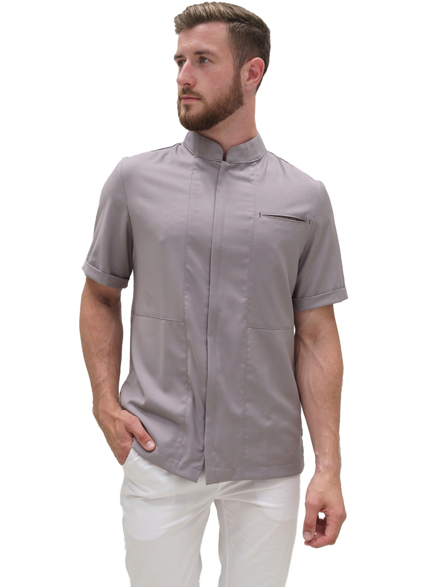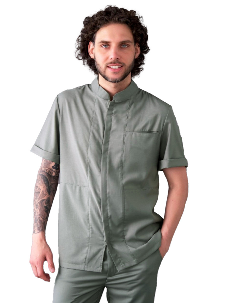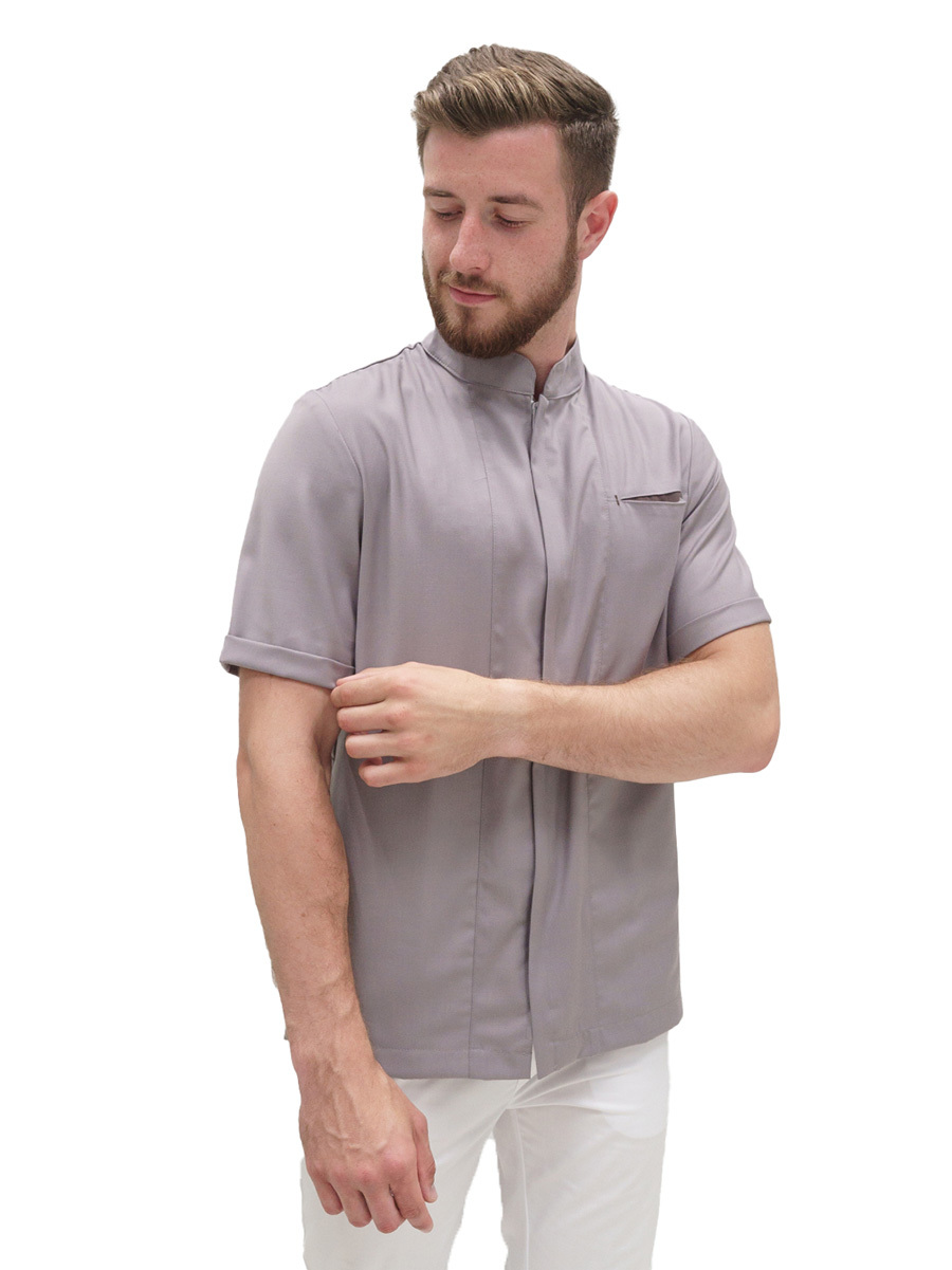 Медицинская мужская рубашка TZ700 выполнена в современном крое с воротником-стойкой и короткими рукавами. Модель с супатной застежкой на молнии и имеет два нагрудных кармана и два боковых.