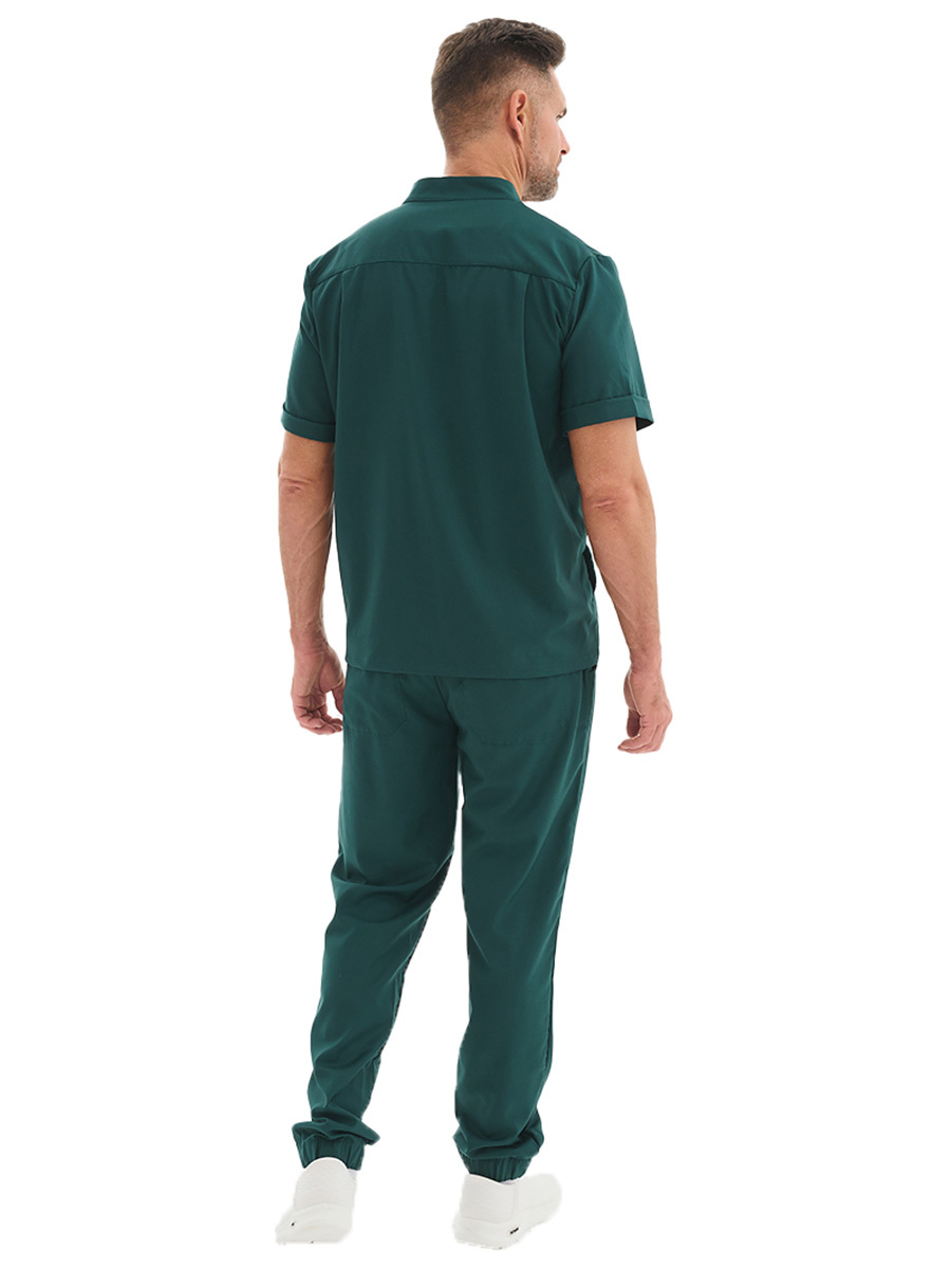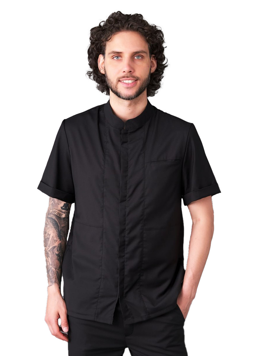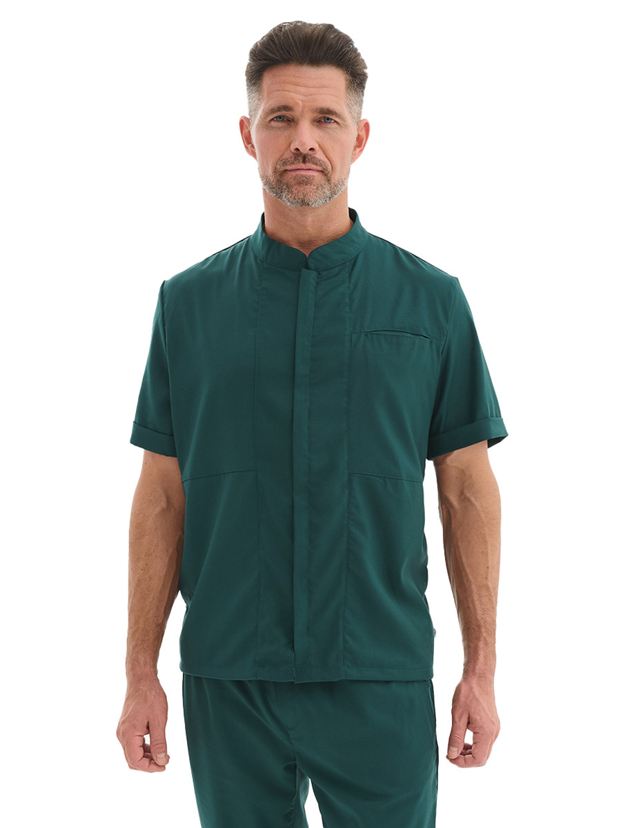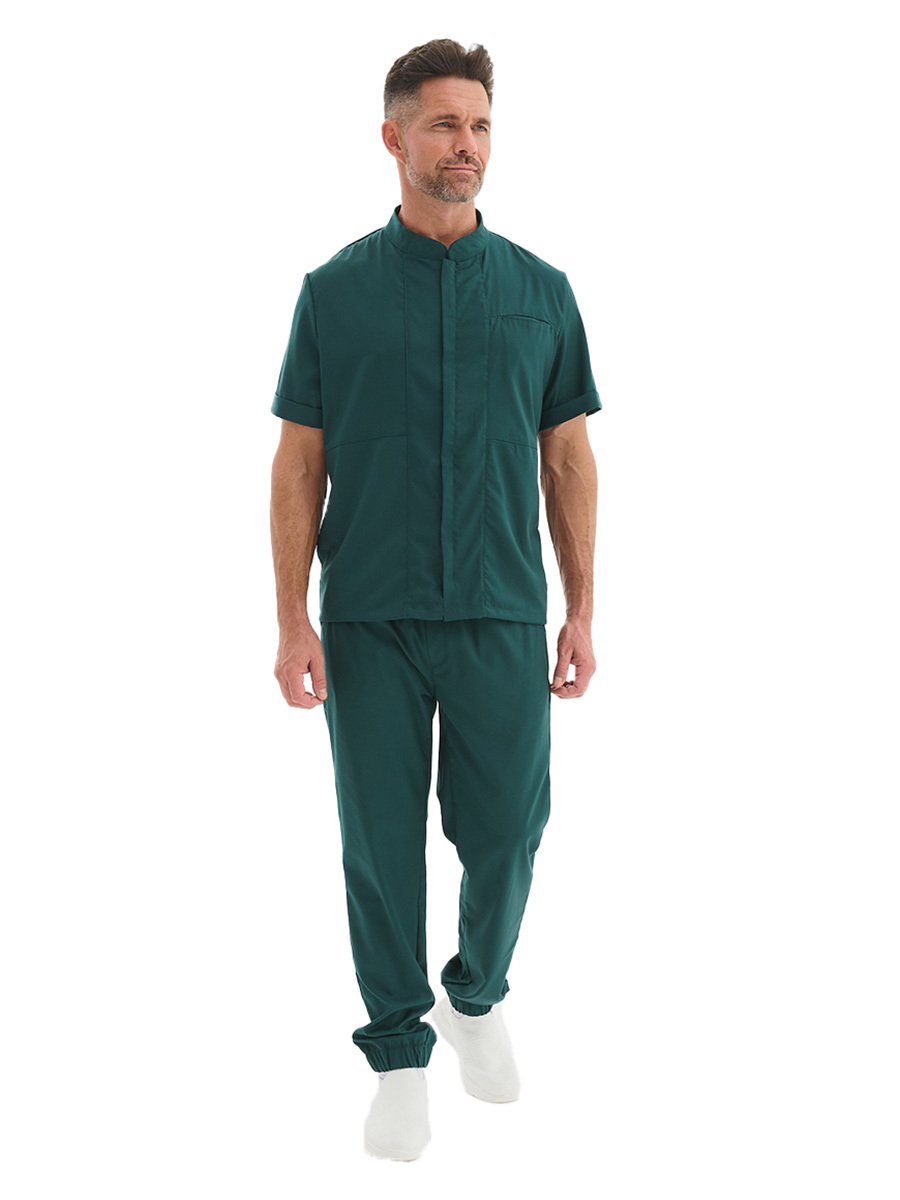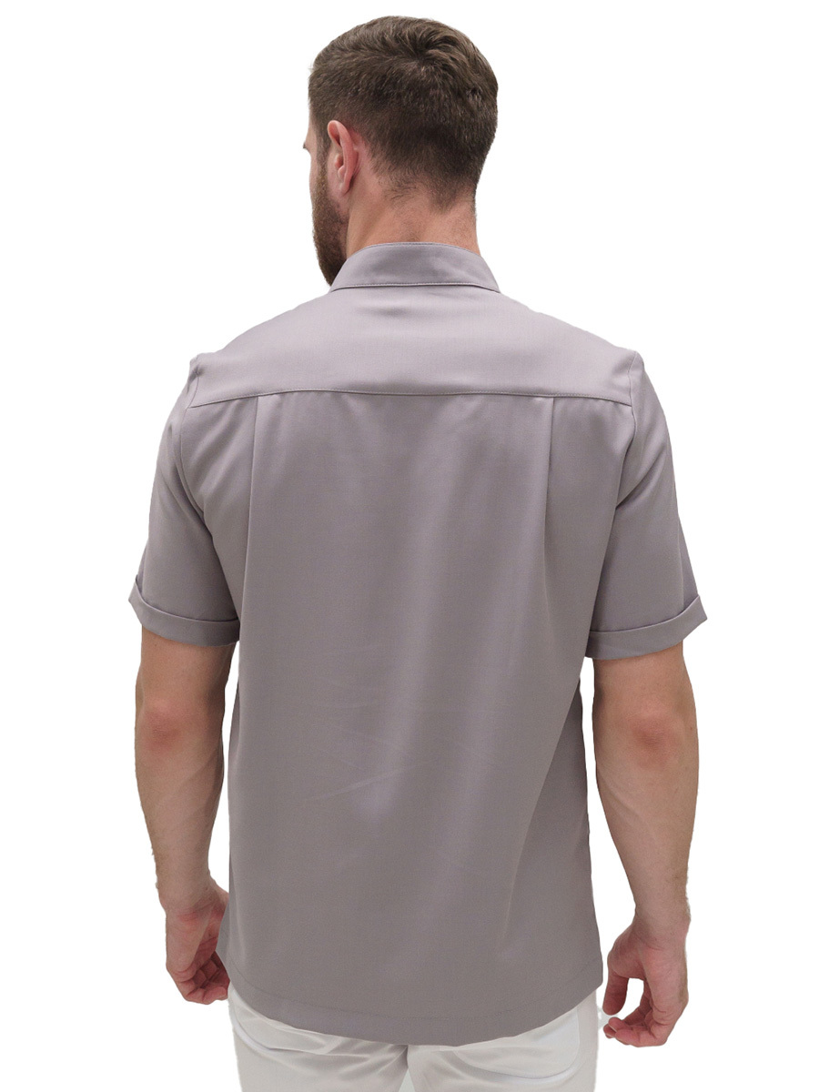 Медицинская мужская рубашка TZ700 выполнена в современном крое с воротником-стойкой и короткими рукавами. Модель с супатной застежкой на молнии и имеет два нагрудных кармана и два боковых.
