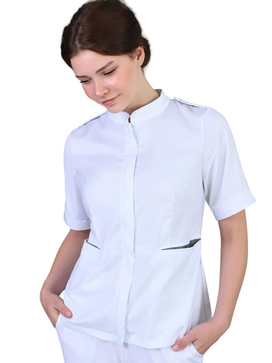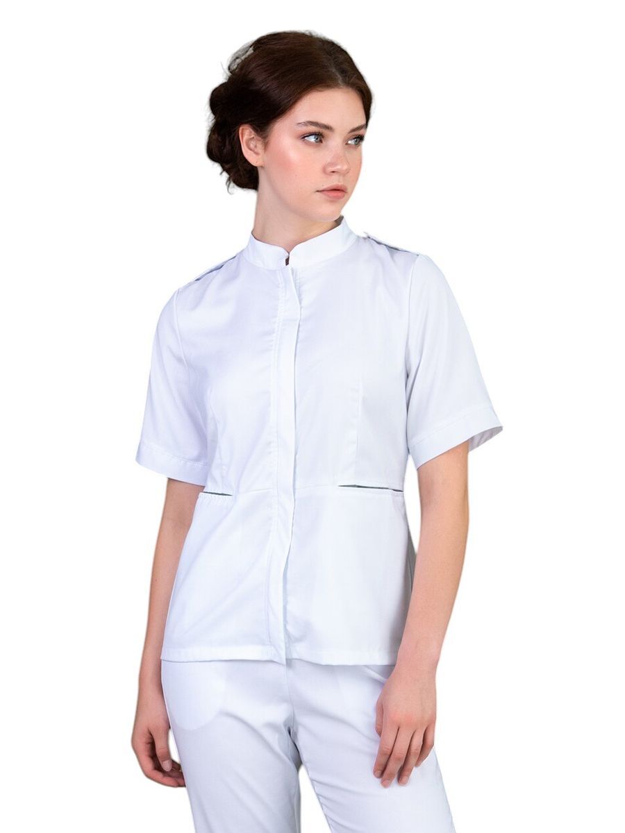 Женская рубашка на молнии модель TZ400 имеет приталенный крой, который подойдет для всех типов фигур. Воротник-стойка, рукав средней длины, два боковых кармана и вытачки на груди обеспечивают комфортную носку, придают стиля образу. Рубашка застегивается на молнию.