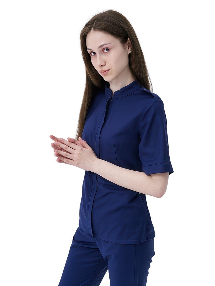 Женская рубашка на молнии модель TZ400 имеет приталенный крой, который подойдет для всех типов фигур. Воротник-стойка, рукав средней длины, два боковых кармана и вытачки на груди обеспечивают комфортную носку, придают стиля образу. Рубашка застегивается на молнию.