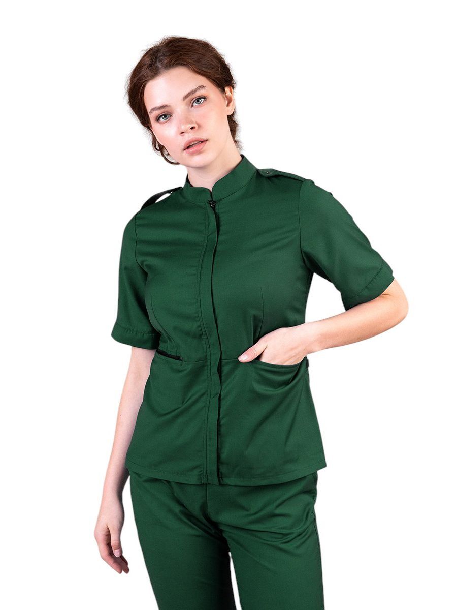 Женская рубашка на молнии модель TZ400 имеет приталенный крой, который подойдет для всех типов фигур. Воротник-стойка, рукав средней длины, два боковых кармана и вытачки на груди обеспечивают комфортную носку, придают стиля образу. Рубашка застегивается на молнию.