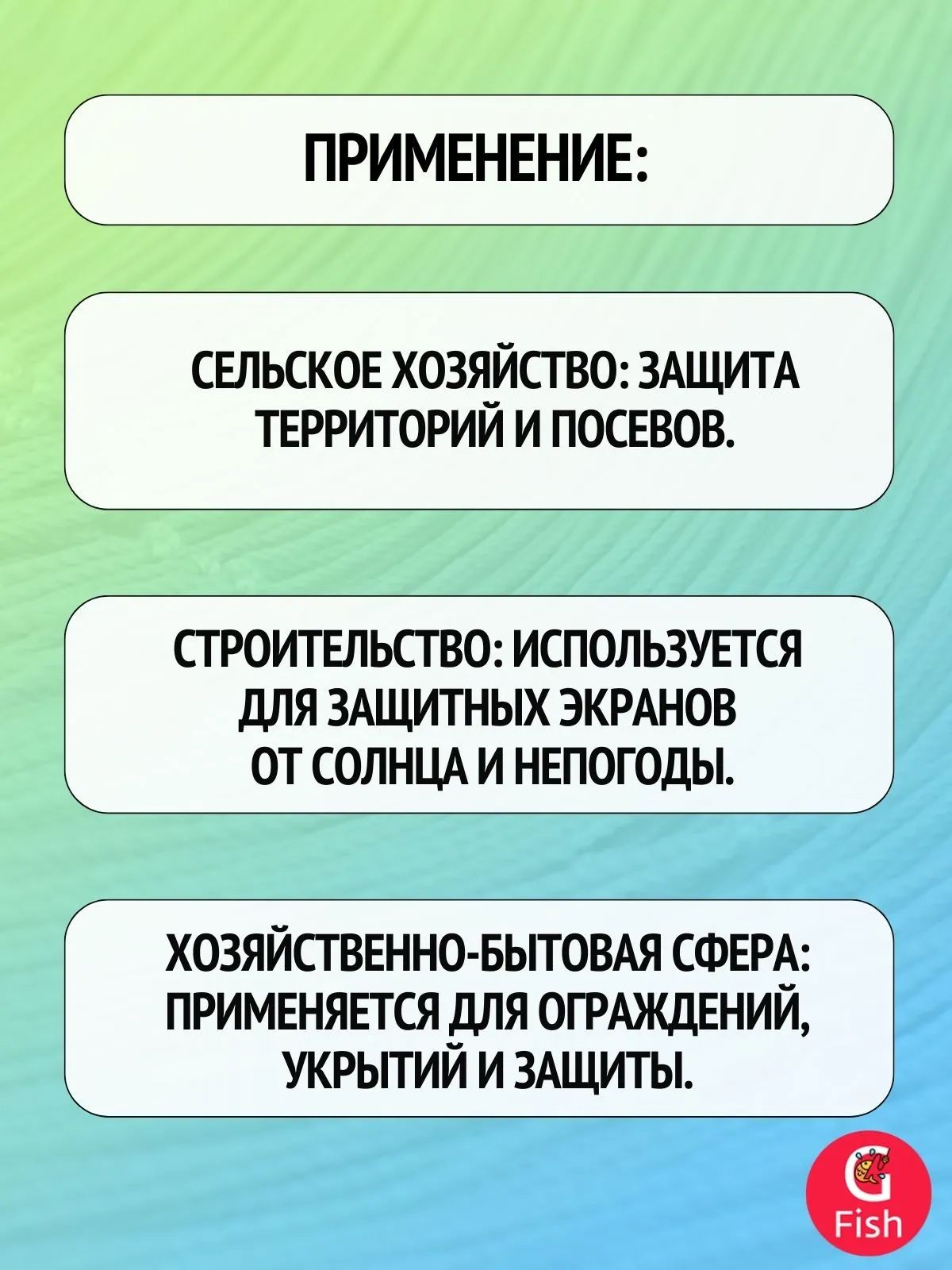 ● Хозяйственно-бытовая сфера: Применяется для ограждений, укрытий и защиты.