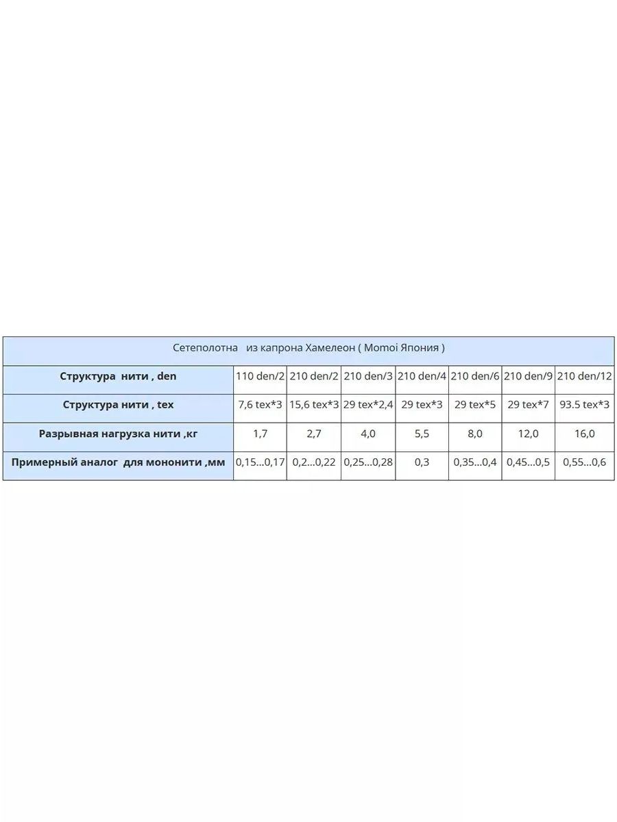 Сеть изготовлена из высокопрочного полиамида, способного выдерживать нагрузки от 1,7 кг до 16 кг в зависимости от модели. Это делает ее идеальным выбором для различных сфер применения.