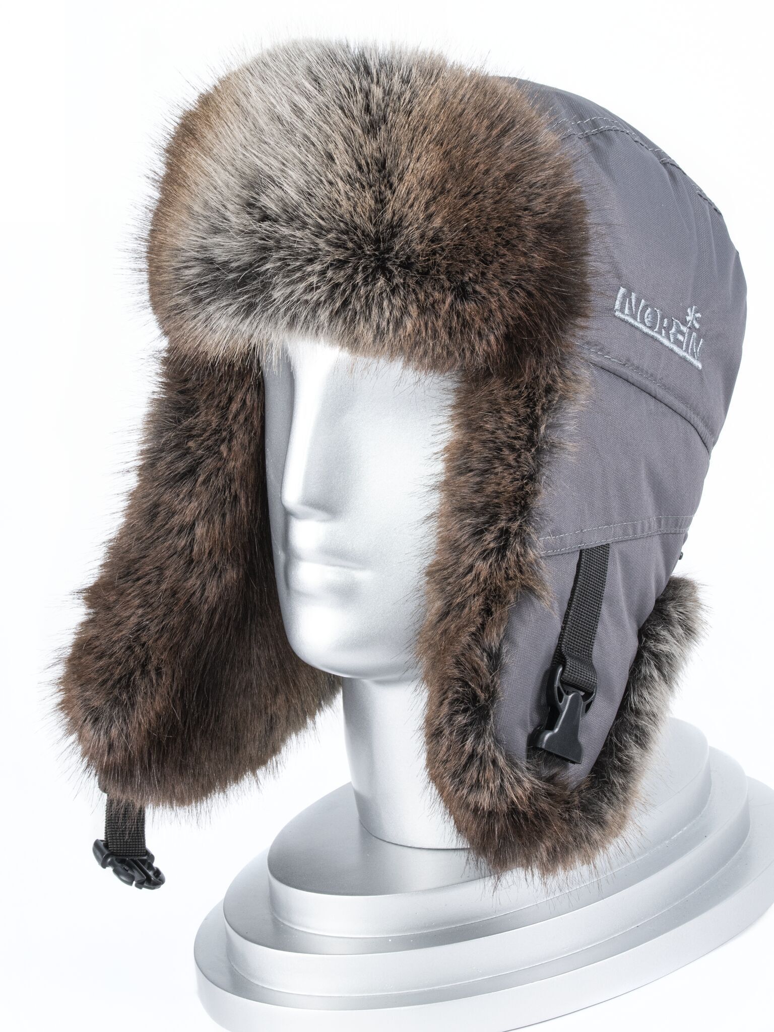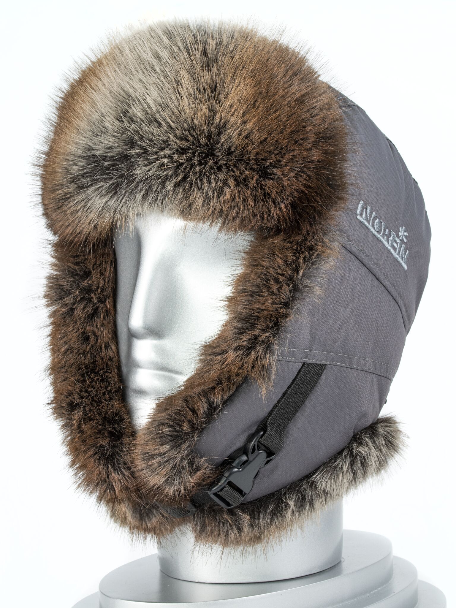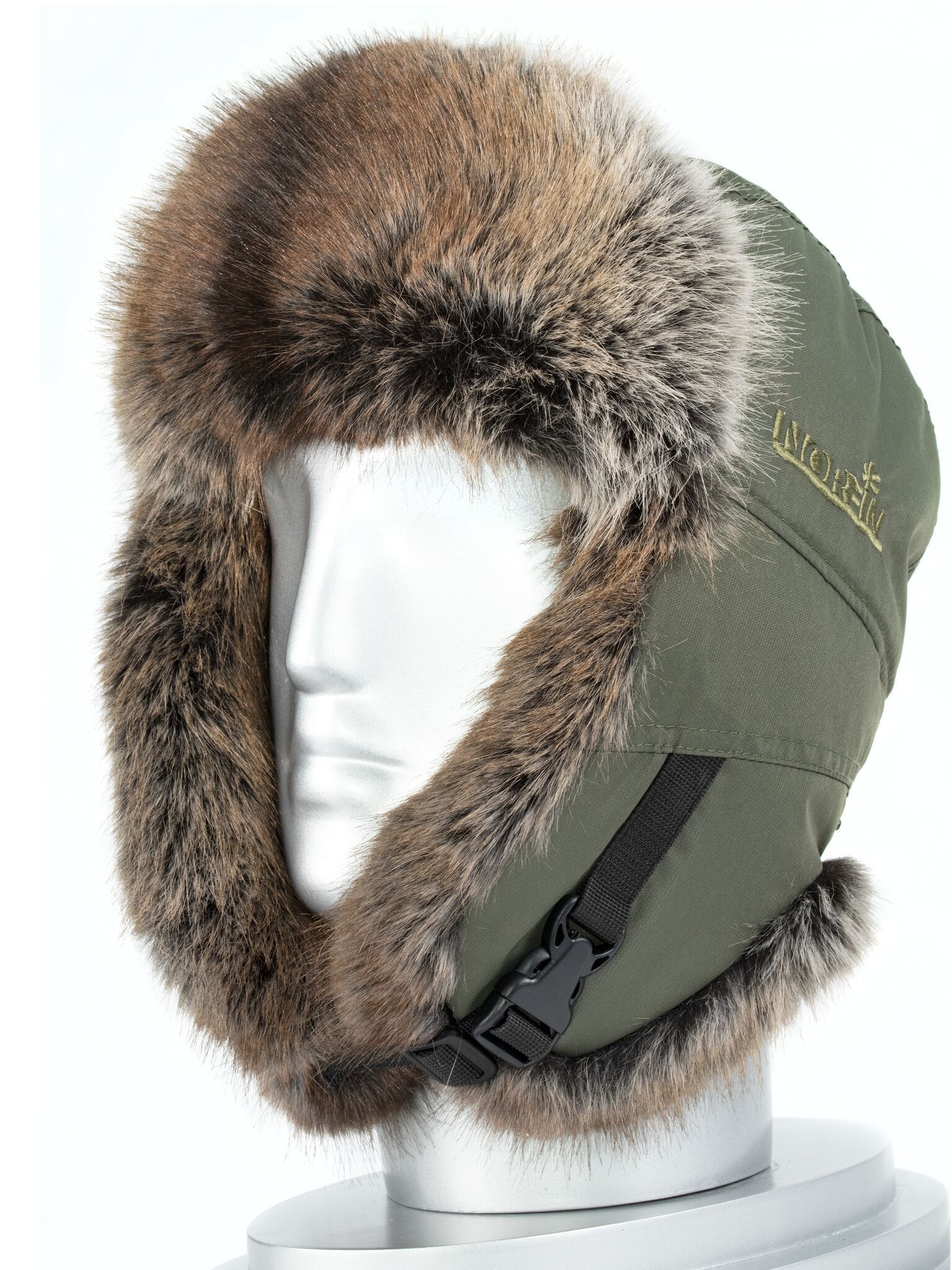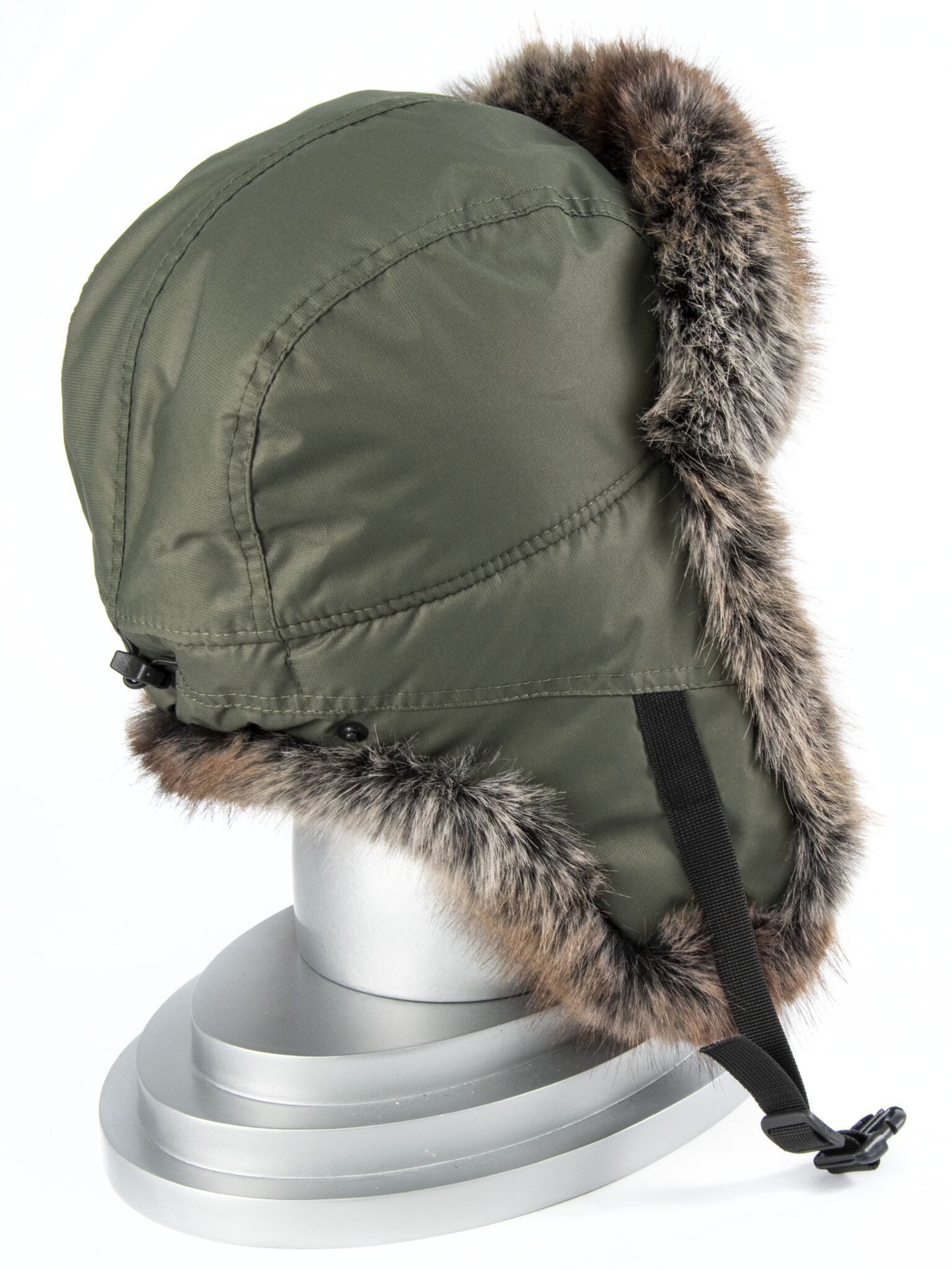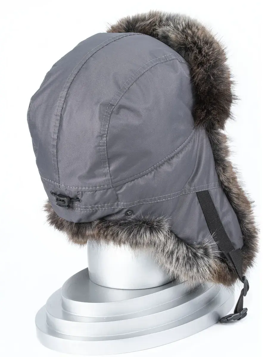 Шапка-ушанка с меховым козырьком, утепленная. 100% полиэстер