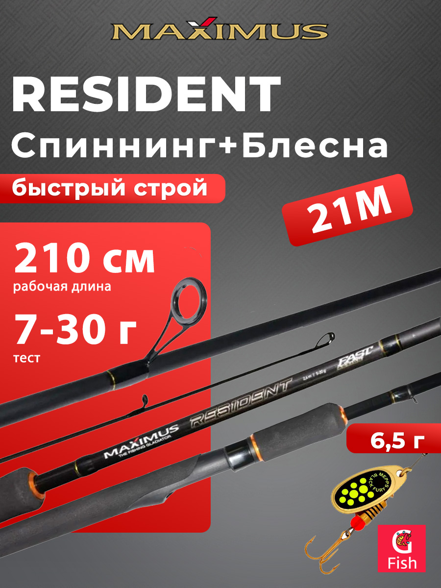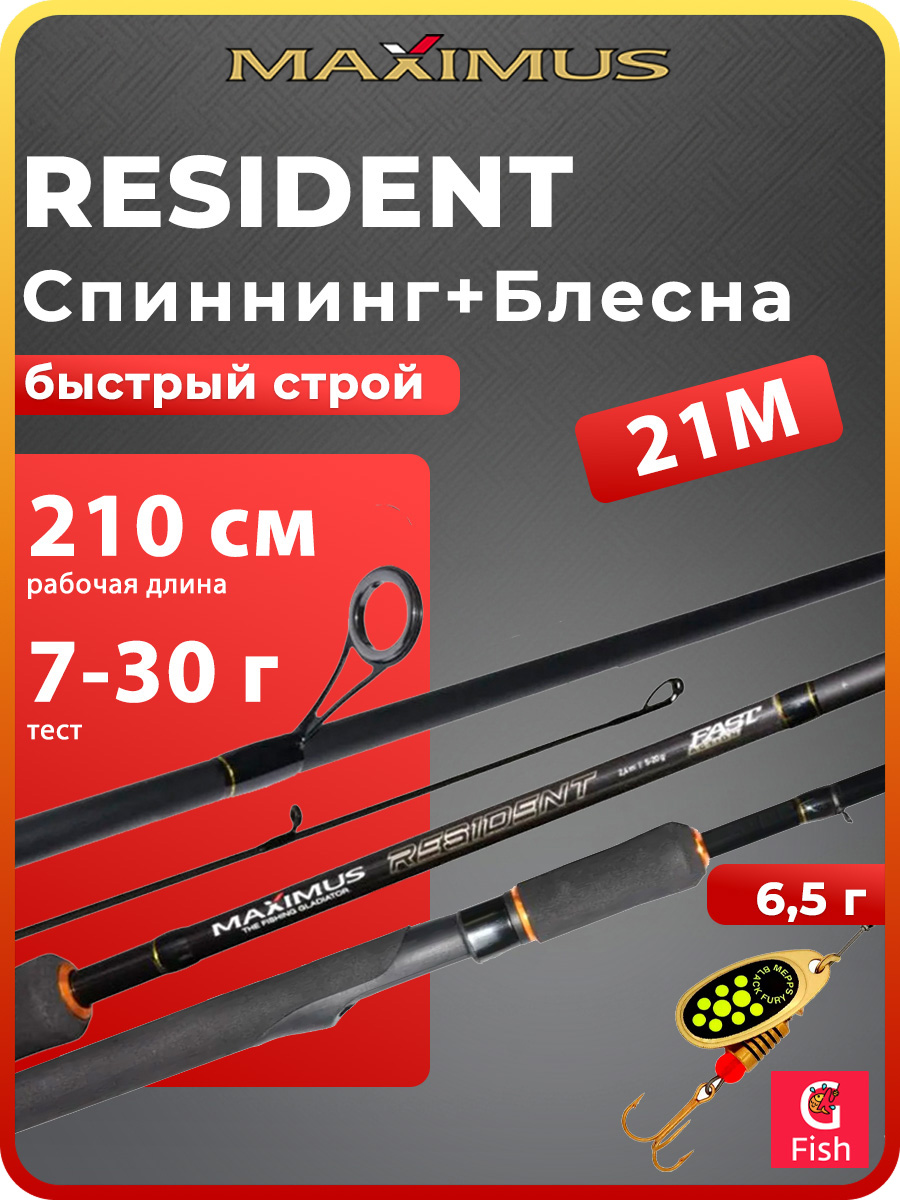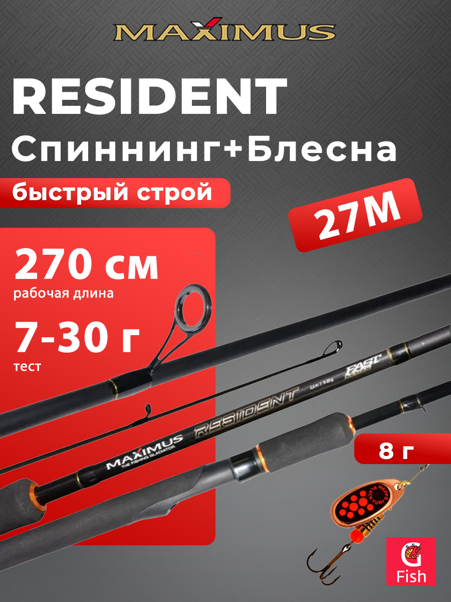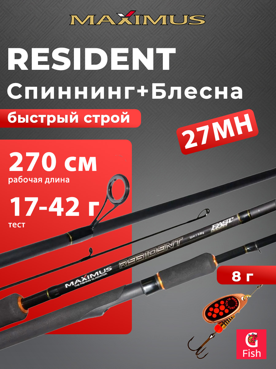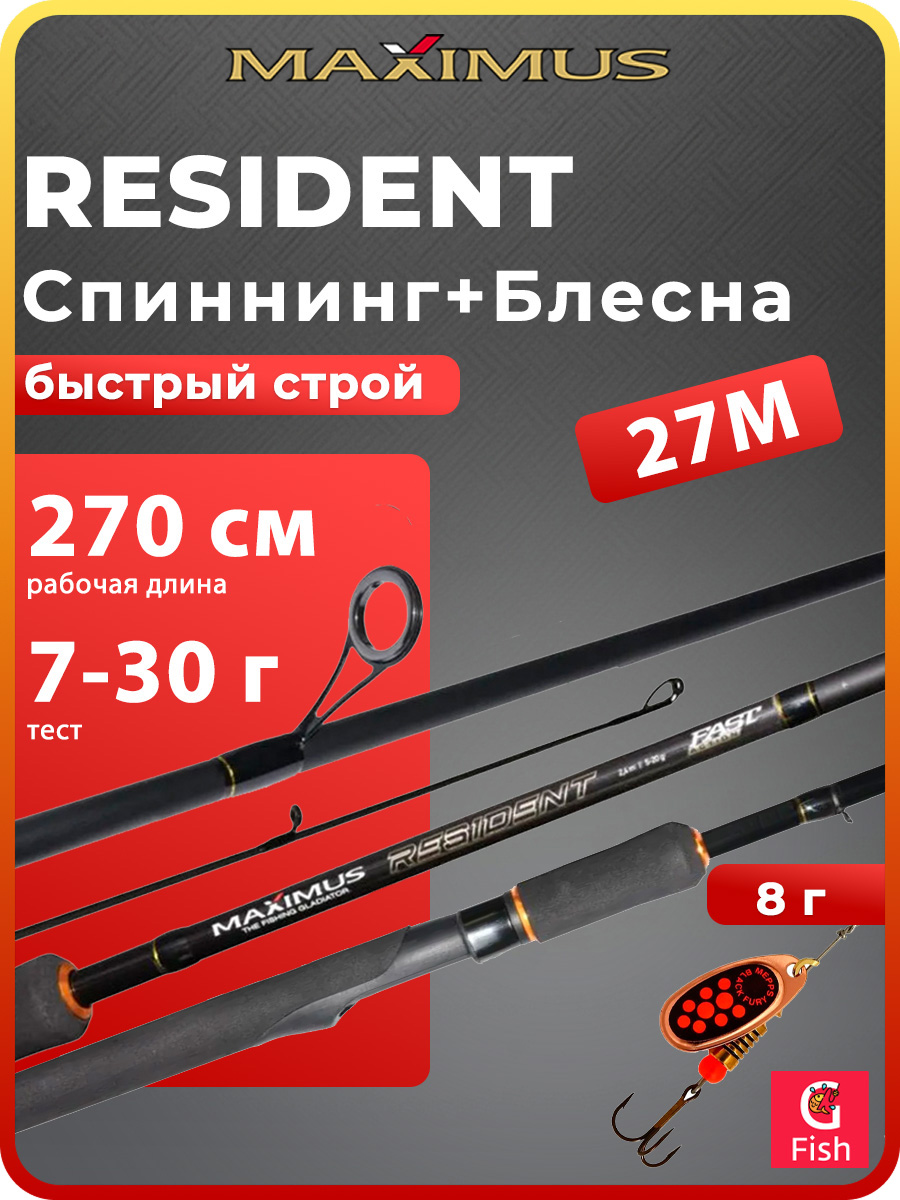 Спиннинг для рыбалки Maximus RESIDENT 27M 2,7m 7-30g + Блесна для рыбалки вращающаяся Mepps BLACK FURY 4, Copper/Orange, 1 штука
