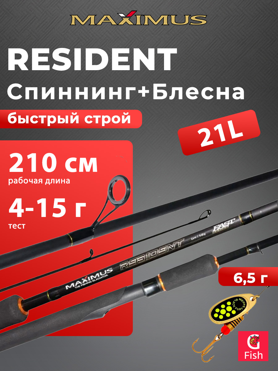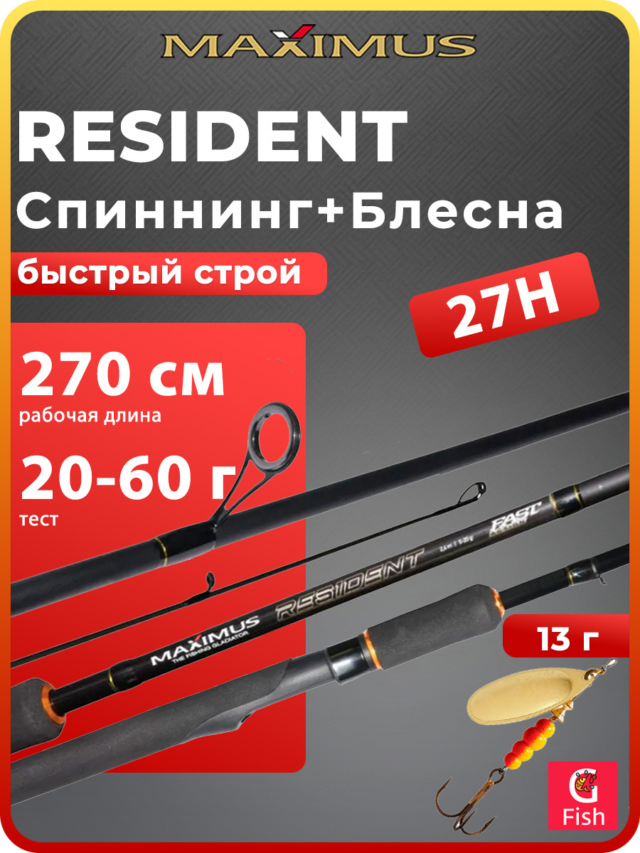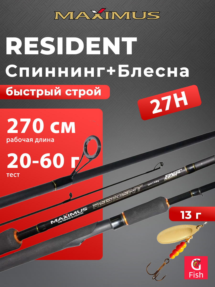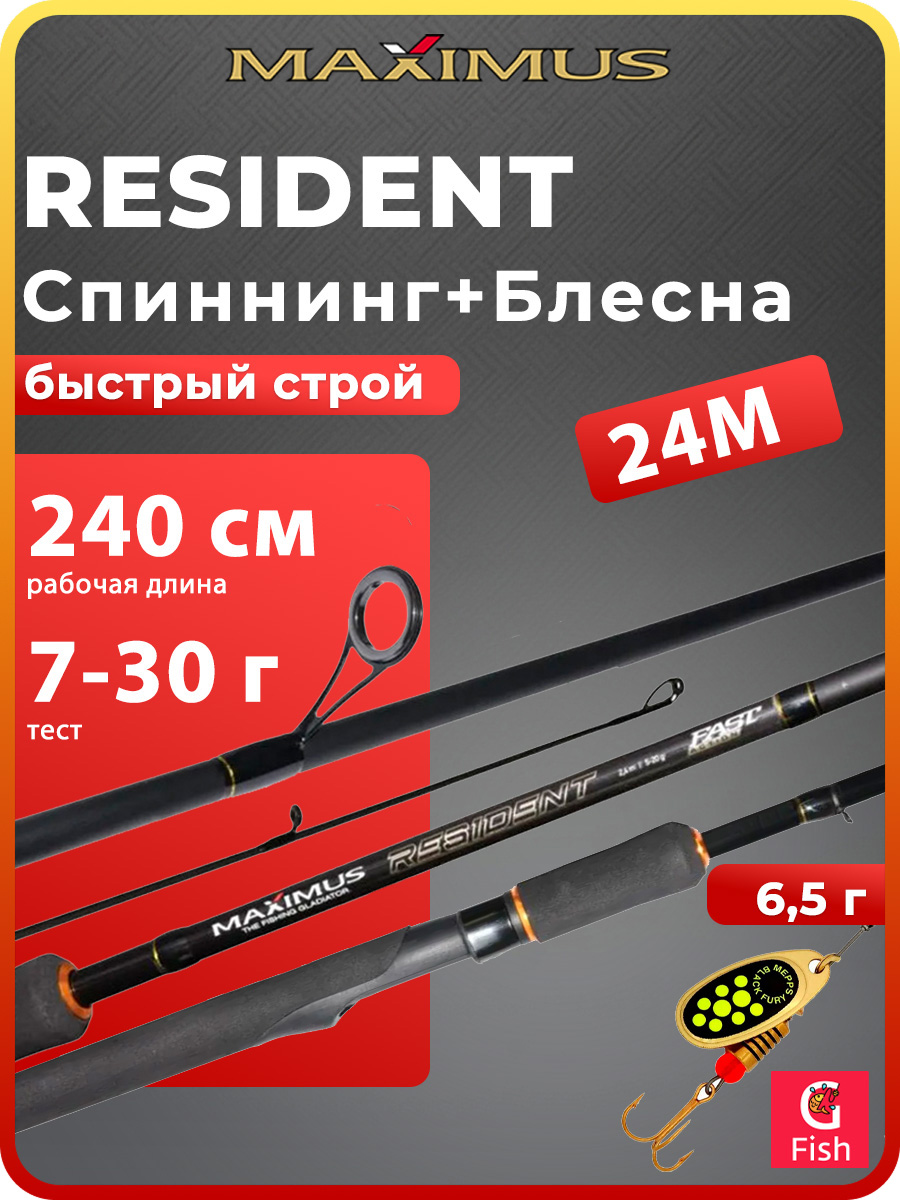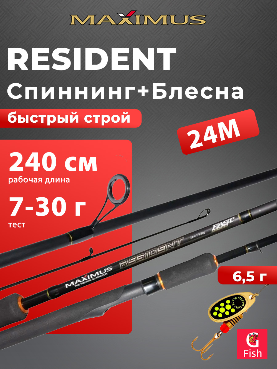 Спиннинг для рыбалки Maximus RESIDENT 27M 2,7m 7-30g + Блесна для рыбалки вращающаяся Mepps BLACK FURY 4, Copper/Orange, 1 штука