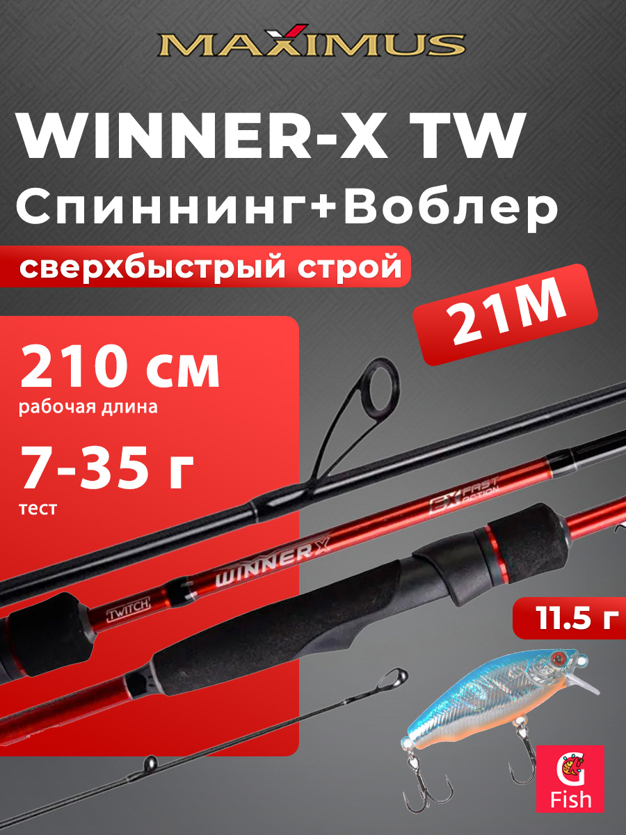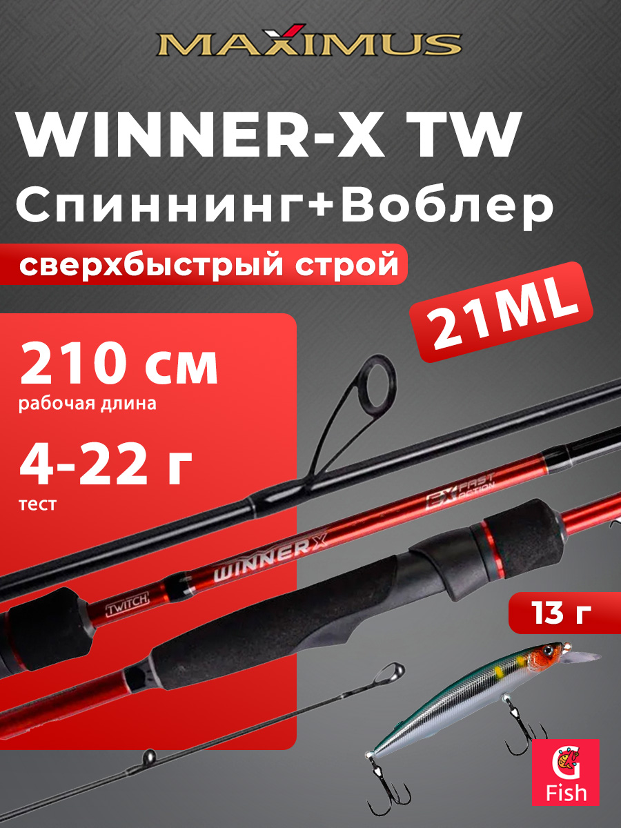 Спиннинг для рыбалки Maximus WINNER-X TW 21ML 2,1m 4-22g + Воблер LureMax RATRI 102SPMR-172, 13 гр., суспендер