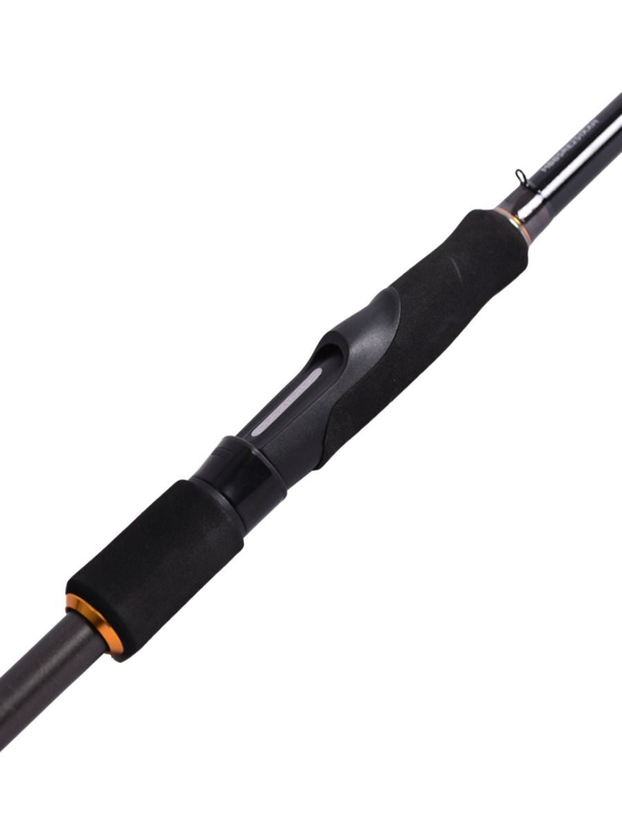 Бланк удилища изготовлен из графита IMF. Разнесенная рукоять уменьшает вес спиннинга, при этом повышая его чувствительность и улучшая баланс. Оснащена «теплым» катушкодержателем (Warm Reel Seat) из плотного мелкопористого неопрена (Eva), что обеспечивает удобный хват.