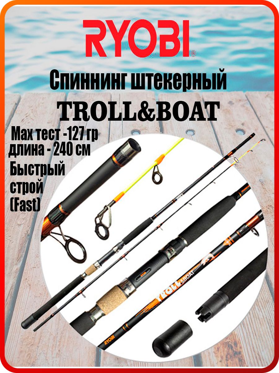 Выходя на российский рынок рыболовных удилищ, японская компания RYOBI (РИОБИ) не могла не выступить в популярном сегменте троллинговых и лодочных удилищ. TROLL&BOAT – надежный сплав графита 24Т, обеспечивающего модели исключительную легкость и надежность. За чувствительность TROLL&BOAT отвечает интегрированная в тело верхнего хлыста поликарбонатная вершинка. Она не просто чувствительна при передаче поклевки и надежна в процессе вываживания – она не боится отрицательных углов и фактически не убиваема. Тем, кто ловит крупную и сильную рыбу, такую как онежский лосось или волжский судак, отлично известно, насколько качество и неубиваемость троллинговой «палки» определяет ее выбор покупателем, особенно когда для оборудования катера требуется от 6 до 12 аналогичных удилищ. Слово BOAT в названии модели говорит о том, что она отлично подходит для ловли хищника с лодки в отвес на любые типы приманок. Обозначение на бланке Up to 200g подразумевает использование одиночных планеров для отведения приманки от борта лодки на нужное расстояние. Выпускается в двух длинах – 2.10 м и 2.40 м.