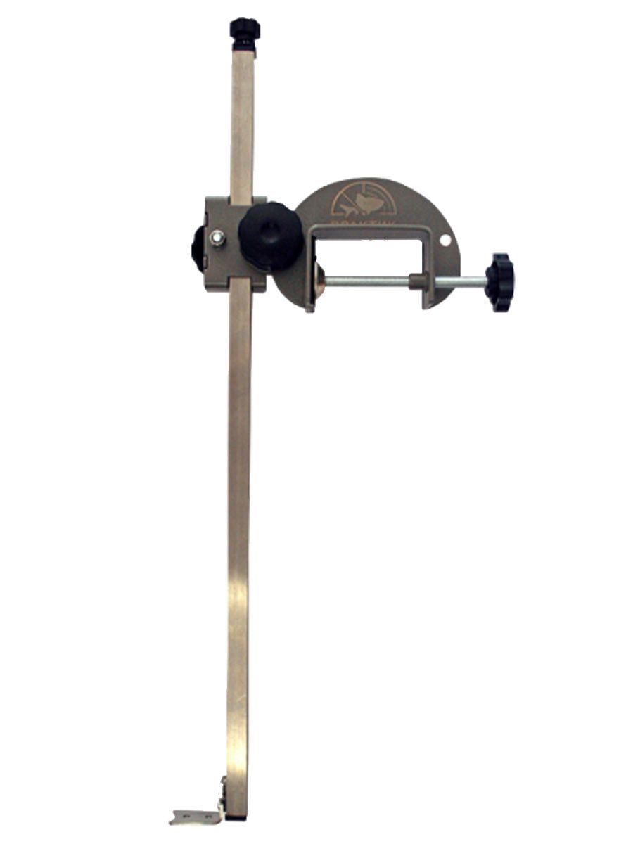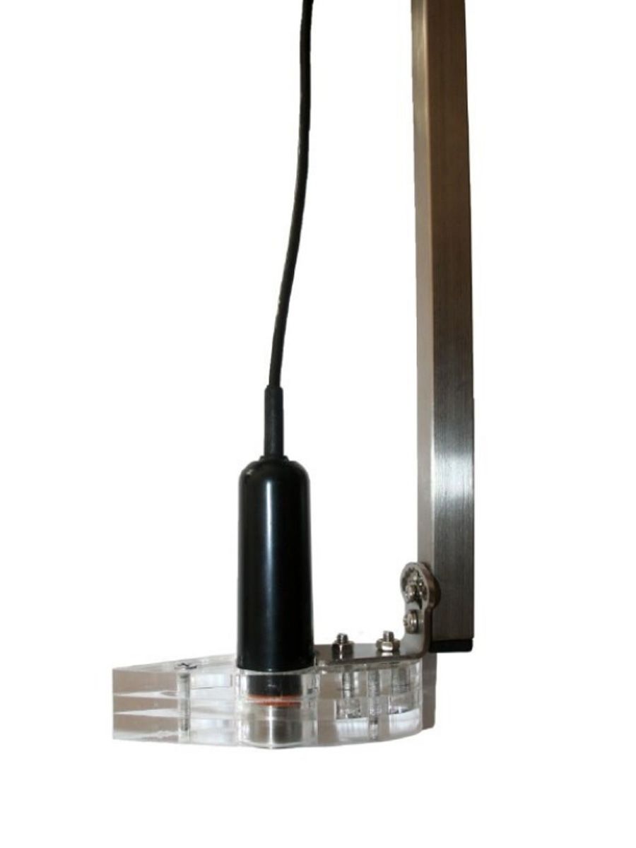 Крепление к лодке имеет регулируемый поворотный механизм с углом до 900 , что позволяет поднять датчик из воды во время перехода на большой скорости с одного места исследования водоема на другое, не снимая всю струбцину с лодки.