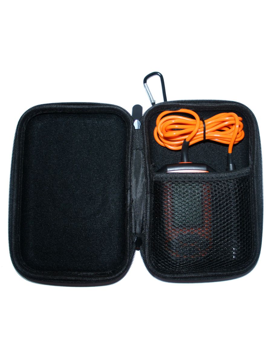 Для надежной фиксации каждого элемента эхолота в футляре предусмотрен отдельный отсек. Носить сумку «Практик» можно на плече или поясе. Для крепления аксессуара к рюкзаку в комплект входит специальный карабин.