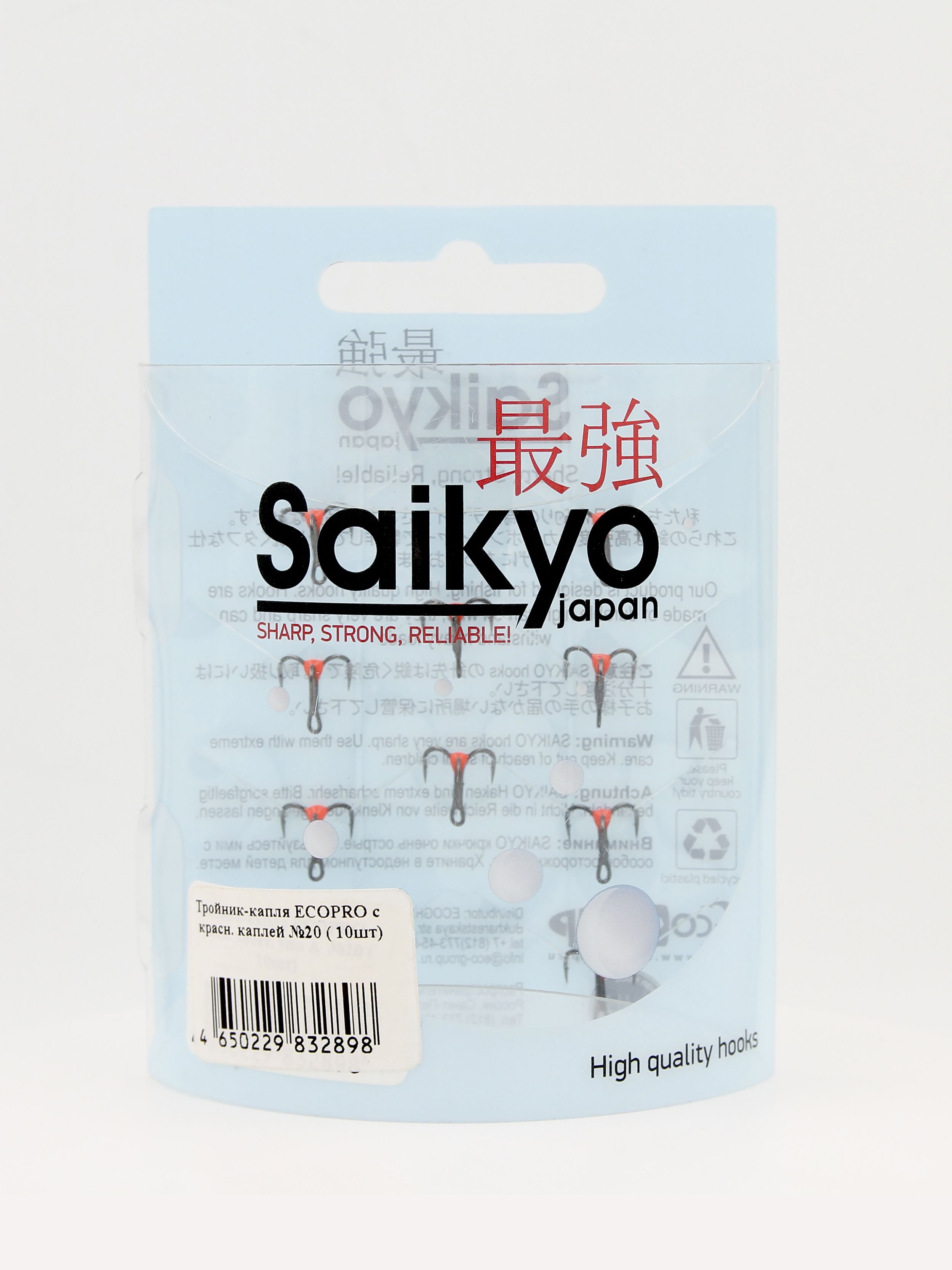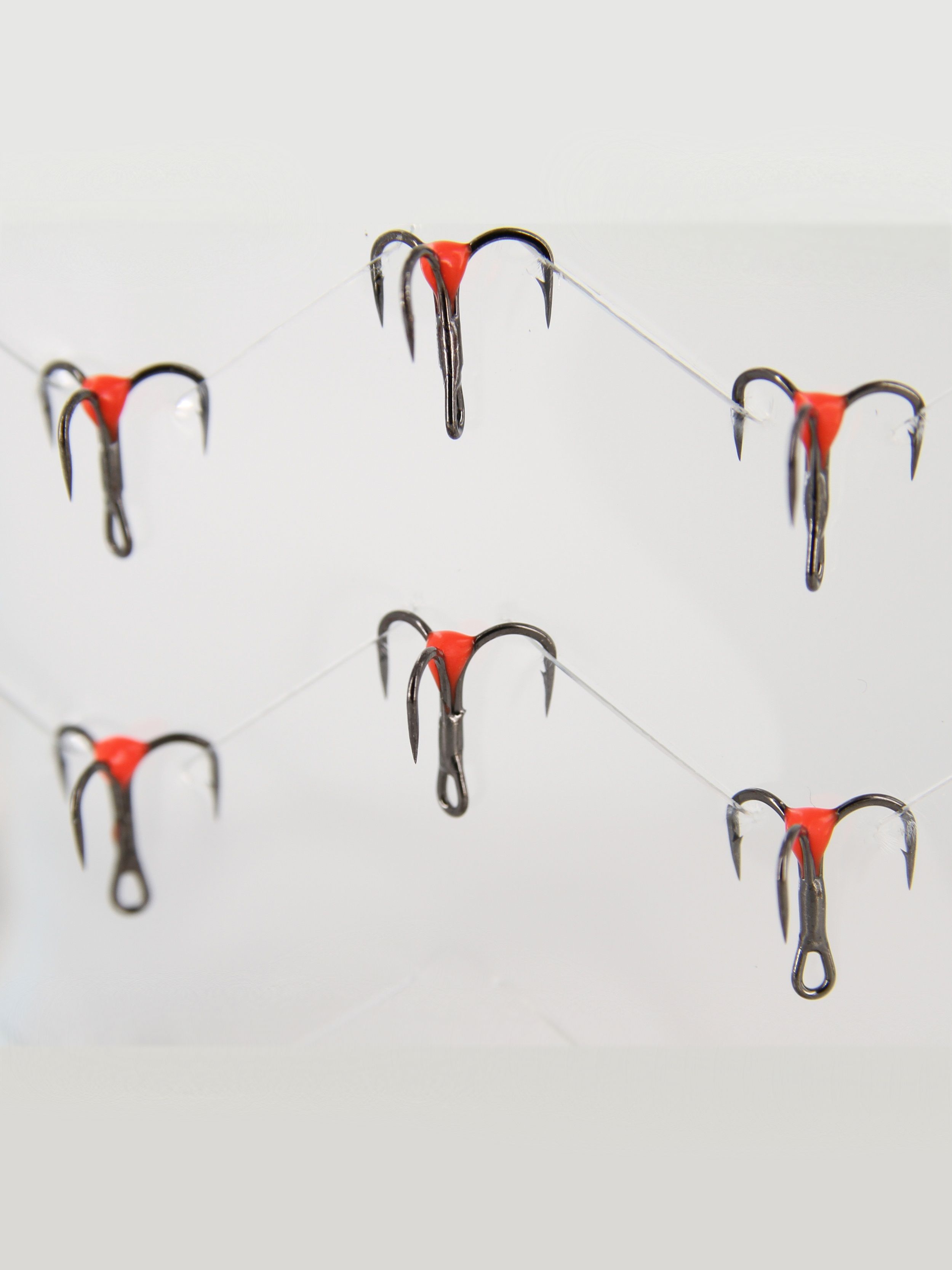 Тройники-капля Ecopro с красной каплей тип A № 20 применяются в качестве привлекающих элементов, призванных повысить привлекательность блесен, мормышек, балансиров и других приманок, применяемых для подледной ловли.