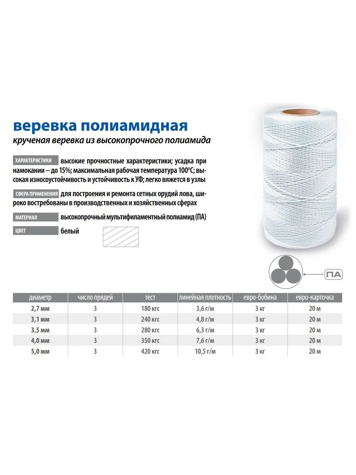 Веревка полиамидная (ТУ 8198-006-67417152-2016)