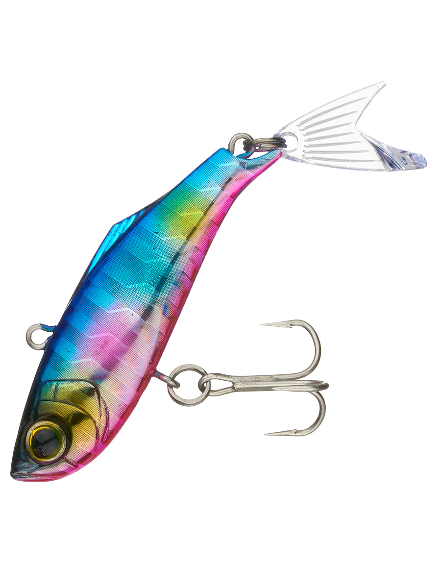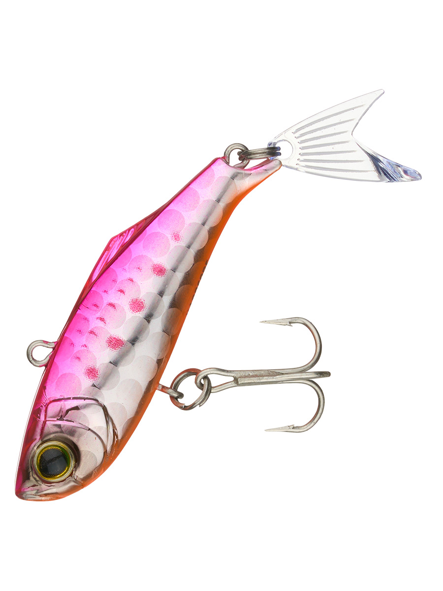 Приманка изготовлена из прочного пластика, устойчивого к повреждениям при контакте с зубами рыбы. Оснащение включает остро заточенные тройники с антикоррозийным покрытием, гарантирующие надежную подсечку. Главная особенность модели – подвижный хвост, который при подъеме и опускании приманки создает максимально естественные движения, провоцируя на атаку даже пассивного хищника. Благодаря высококачественному исполнению и продуманной конструкции, виб демонстрирует превосходные игровые характеристики в любых условиях ловли.