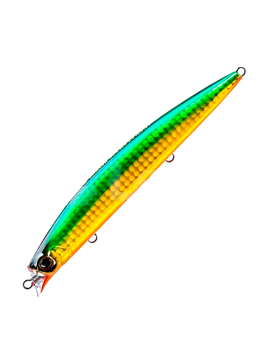 Воблер имеет вытянутый пластиковый корпус, обеспечивающий превосходные аэродинамические свойства. Конструкция включает качественную фурнитуру с парой острозаточенных тройных крючков, гарантирующих надежную подсечку, а также систему дальнего заброса, основанную на мощном магните с вольфрамовым грузом. Эта система значительно улучшает полетные характеристики приманки и обеспечивает ее стабильную игру после заброса.