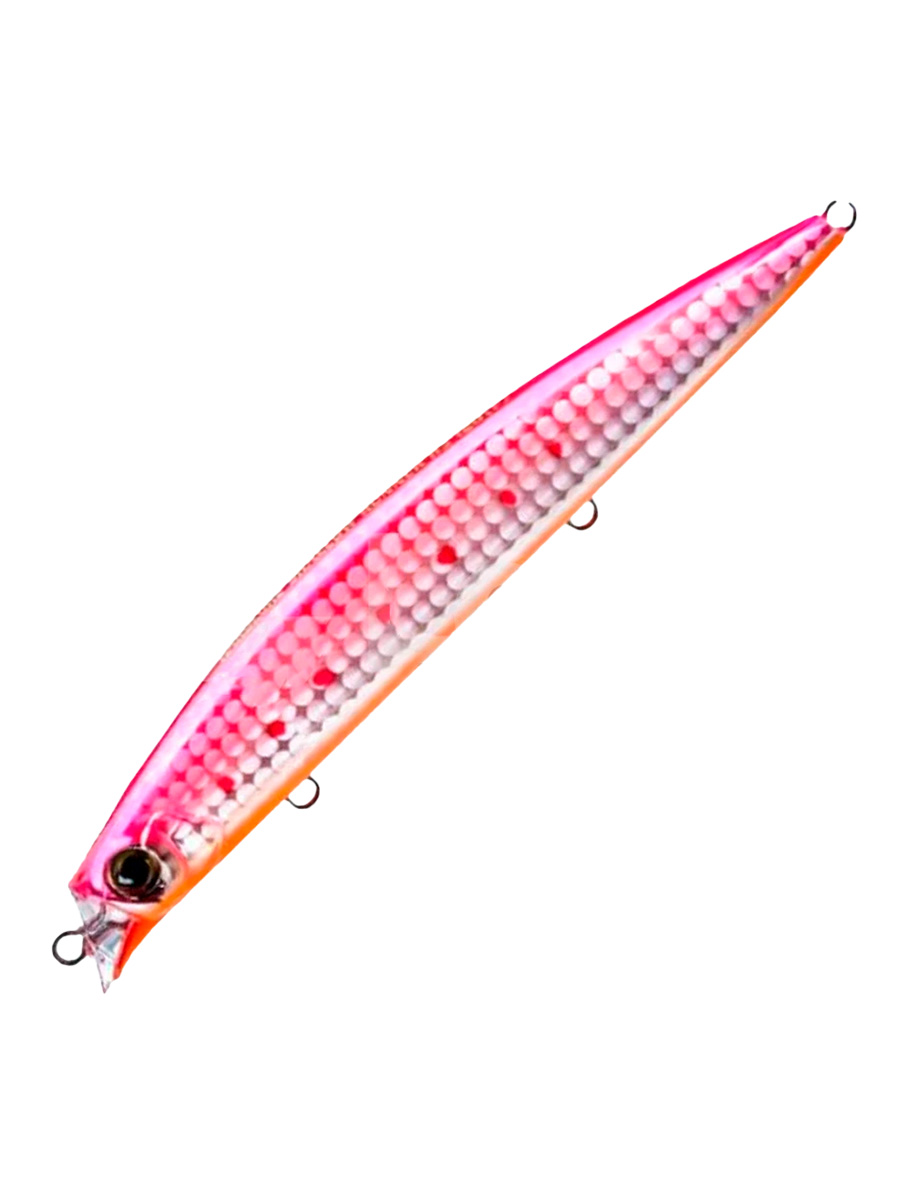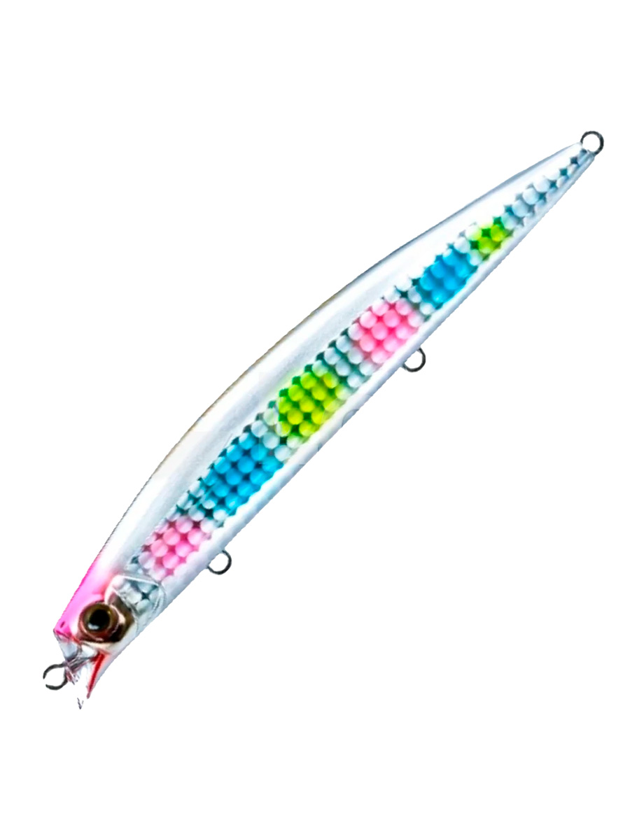 Воблер имеет вытянутый пластиковый корпус, обеспечивающий превосходные аэродинамические свойства. Конструкция включает качественную фурнитуру с парой острозаточенных тройных крючков, гарантирующих надежную подсечку, а также систему дальнего заброса, основанную на мощном магните с вольфрамовым грузом. Эта система значительно улучшает полетные характеристики приманки и обеспечивает ее стабильную игру после заброса.