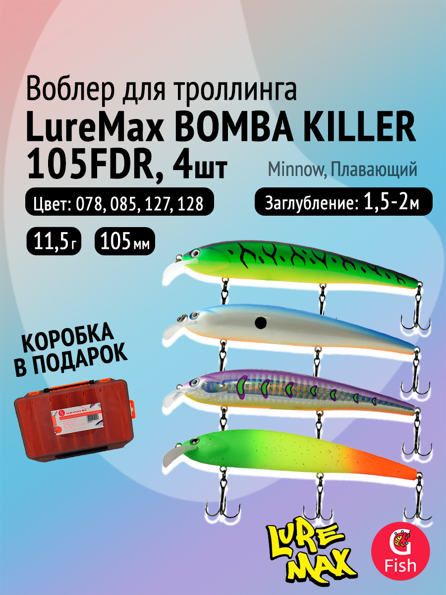 Воблер Bomba Killer с седловидной лопаткой специально разработан для троллинговой ловли судака, кумжи и озерного лосося. Благодаря особой форме носовой лопасти и специальной балансировке Bomba Killer имеет ярко выраженную двойную игру, где на первое место выходит Rolling, а на второе – колебания тела с небольшим «рысканьем», которое привлекает и провоцирует на поклёвку всех вышеперечисленных хищников. Во время «полевых» испытаний были получены отличные результаты при ловле судака и щуки.
