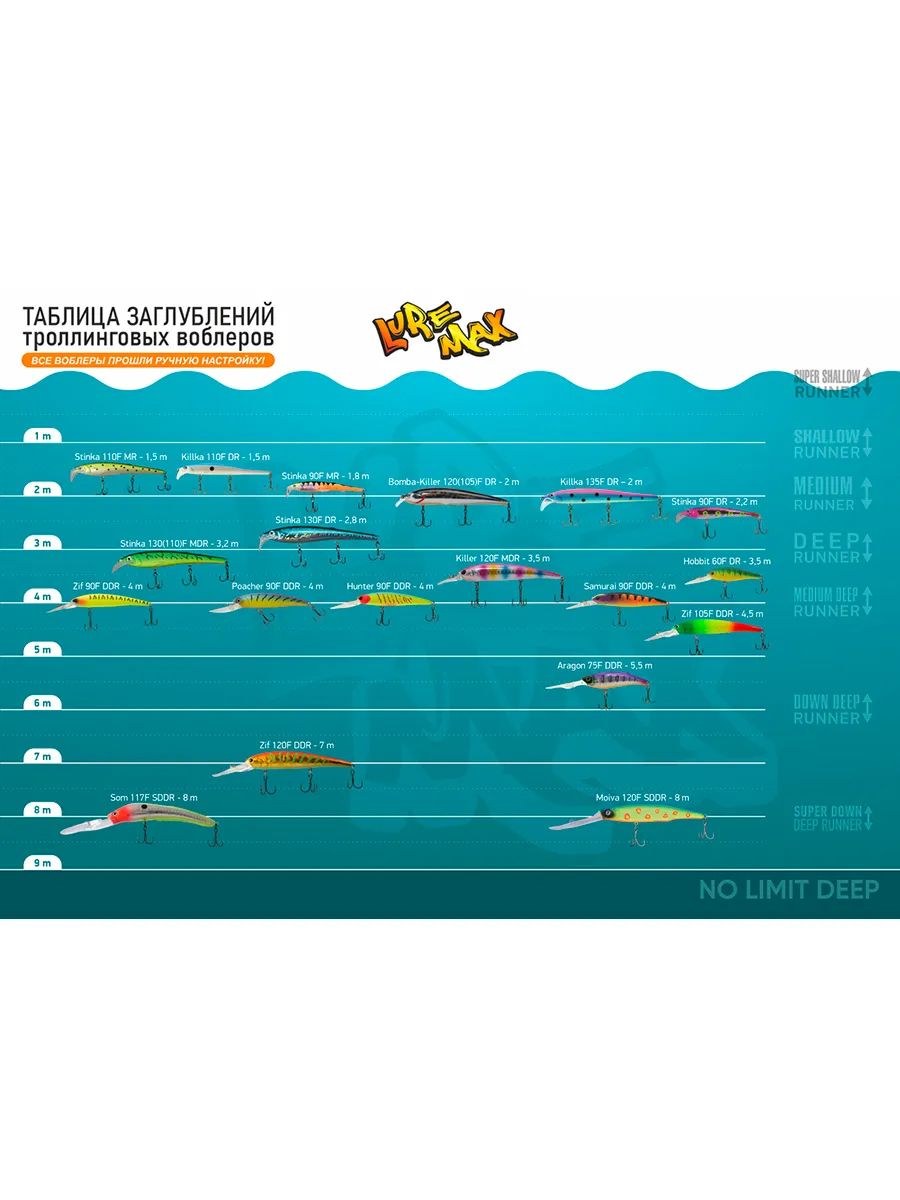 Вся цветовая гамма LureMax разрабатывалась при непосредственном участии российских рыболовов специально с учетом специфики ловли на местных водоёмах. Приманки светятся в ультрафиолете, что повышает их заметность для хищника в условиях низкой освещенности.