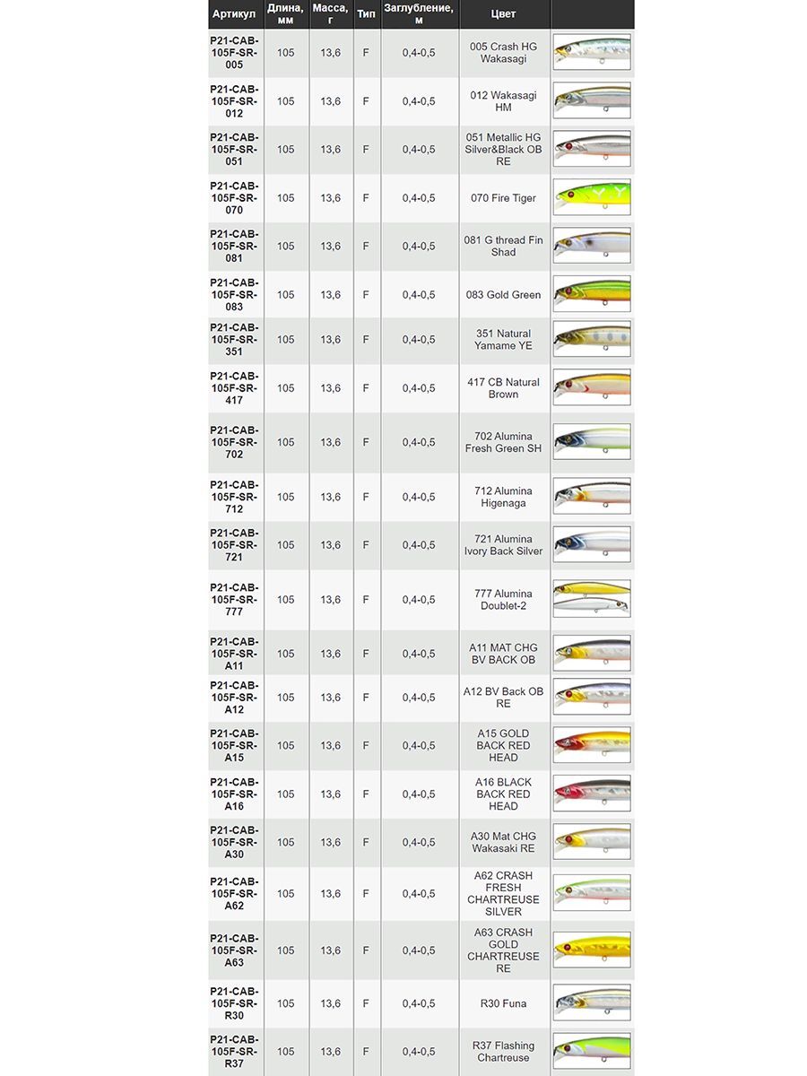 Именно для таких участков в Pontoon21 разработали дополнительную модификацию. На настоящее время она доступна в одном размере – 105 мм и двух вариантах плавучести, а именно Cablista 105 F-SR (Floating – Shallow Runner) и Cablista 105SP-SR (Suspend – Shallow Runner). Как и предыдущие модели, новые мелководные Cablista имеют балансировочную систему TMB (Tungsten Moving Balls), благодаря чему заброс и у них получается очень дальним и предельно точным – это вам подтвердит любой, кто знаком с Cablista. А вот заглубляющая лопасть у новинок адаптирована для эффективной работы на глубинах, не превышающих одного метра.