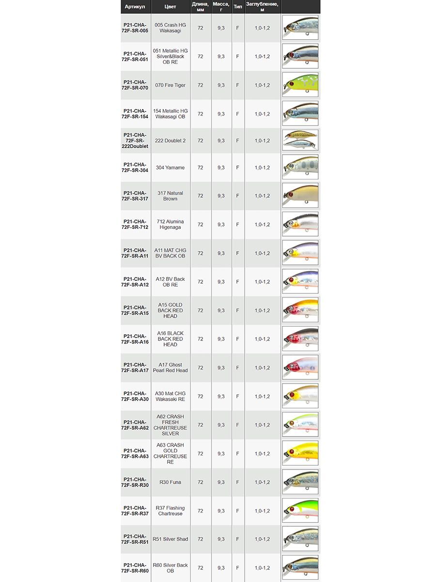 На сегодняшний день представлено две модификации Pontoon21 Chaos – мелководная (SR) с заглублением до 1,2 м и глубоководная (DR), с рабочим горизонтом 2,0-2,5 м. Независимо от наличия той или иной заглубляющей лопасти воблеры отличает повышенная устойчивость, что позволяет одинаково успешно использовать их как в стоячих водоемах, так и на течении. Основные приемы анимации – проводка с остановками "stop&go", легкий джеркинг, неагрессивный твичинг, а также равномерная проводка.
