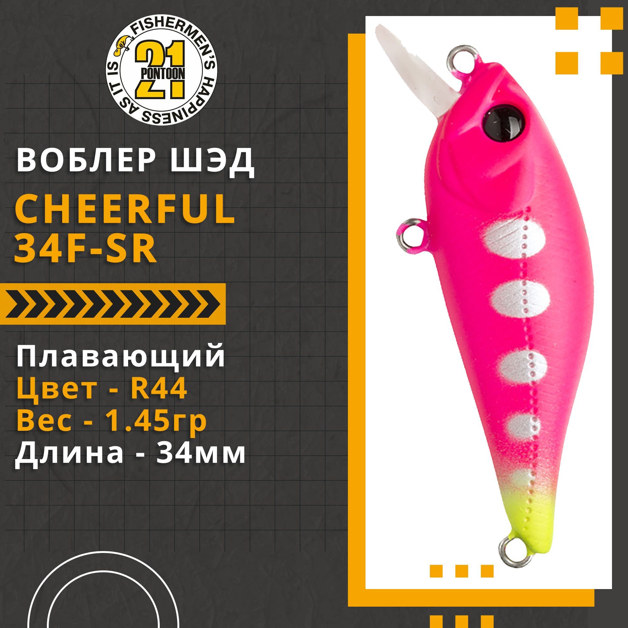 Cheerful – воблер, с которого началась история Pontoon21. Стоило появиться одной-единственной модели, маленькому шэду (shad) Cheerful 40, как имя Pontoon21 мгновенно стало широко известным. Юркий маленький воблерок ловил всё и везде, не заваливаясь на самом быстром течении, отлично удерживаясь в любых водоворотах и оставаясь привлекательным при любой анимации как на течении, так и в спокойной воде. Cheerful 40 и сейчас чувствует себя прекрасно, а в его "послужном списке" присутствуют практически все хищники, обитающие в наших водах. Найдётся не так уж много моделей, которые остаются в коллекциях компаний и в коробках рыболовов столь долгий срок, будучи по-прежнему востребованными и популярными. По мнению абсолютного большинства рыболовов, специализирующихся в легком спиннинге, эта серия небольших воблерков по праву может считаться одной из лучших для ультралайтовой ловли. Уплощенной с боков формой тела Cheerful предельно точно имитируют мальков высокотелых видов рыб и отличаются достаточно необычной, специфической игрой. Внутренняя балансировочная система, состоящая из трех разнесенных внутри тела подвижных вольфрамовых шариков, обеспечивает приманке оптимальное расположение не только при забросе, но и в воде во время проводки.