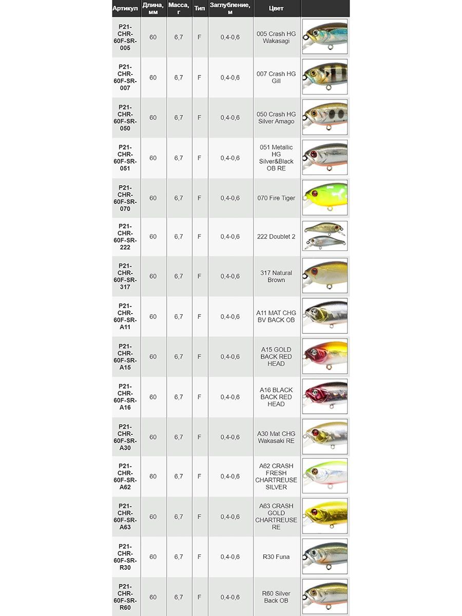 Cheerful длиной 60 мм унаследовал все лучшие качества своего прародителя и рассчитан по своему размеру уже на весьма солидные трофеи. Игра очень активна, сочетает явно выраженные поперечные колебания (wobbling) со столь же яркими и акцентированными поворотами тела вправо-влево относительно продольной оси (rolling). Эта комбинация достигнута выверенным контуром и внутренним балансом. Металлические балансировочные шарики подрагивают при движении, добавляя к игре приманки дополнительные штрихи и сопровождая её лёгким привлекательным звуком.