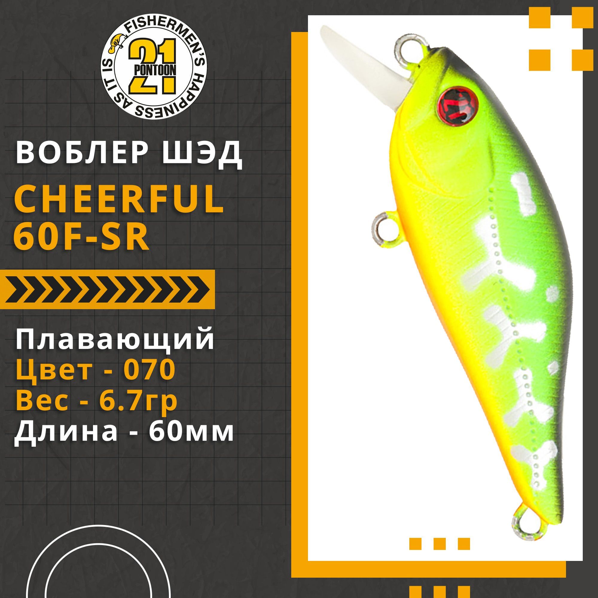 Cheerful – воблер, с которого началась история Pontoon21. Стоило появиться одной-единственной модели, маленькому шэду (shad) Cheerful 40, как имя Pontoon21 мгновенно стало широко известным. Юркий маленький воблерок ловил всё и везде, не заваливаясь на самом быстром течении, отлично удерживаясь в любых водоворотах и оставаясь привлекательным при любой анимации как на течении, так и в спокойной воде. Cheerful 40 и сейчас чувствует себя прекрасно, а в его "послужном списке" присутствуют практически все хищники, обитающие в наших водах. Найдётся не так уж много моделей, которые остаются в коллекциях компаний и в коробках рыболовов столь долгий срок, будучи по-прежнему востребованными и популярными. По мнению абсолютного большинства рыболовов, специализирующихся в легком спиннинге, эта серия небольших воблерков по праву может считаться одной из лучших для ультралайтовой ловли. Уплощенной с боков формой тела Cheerful предельно точно имитируют мальков высокотелых видов рыб и отличаются достаточно необычной, специфической игрой. Внутренняя балансировочная система, состоящая из трех разнесенных внутри тела подвижных вольфрамовых шариков, обеспечивает приманке оптимальное расположение не только при забросе, но и в воде во время проводки.