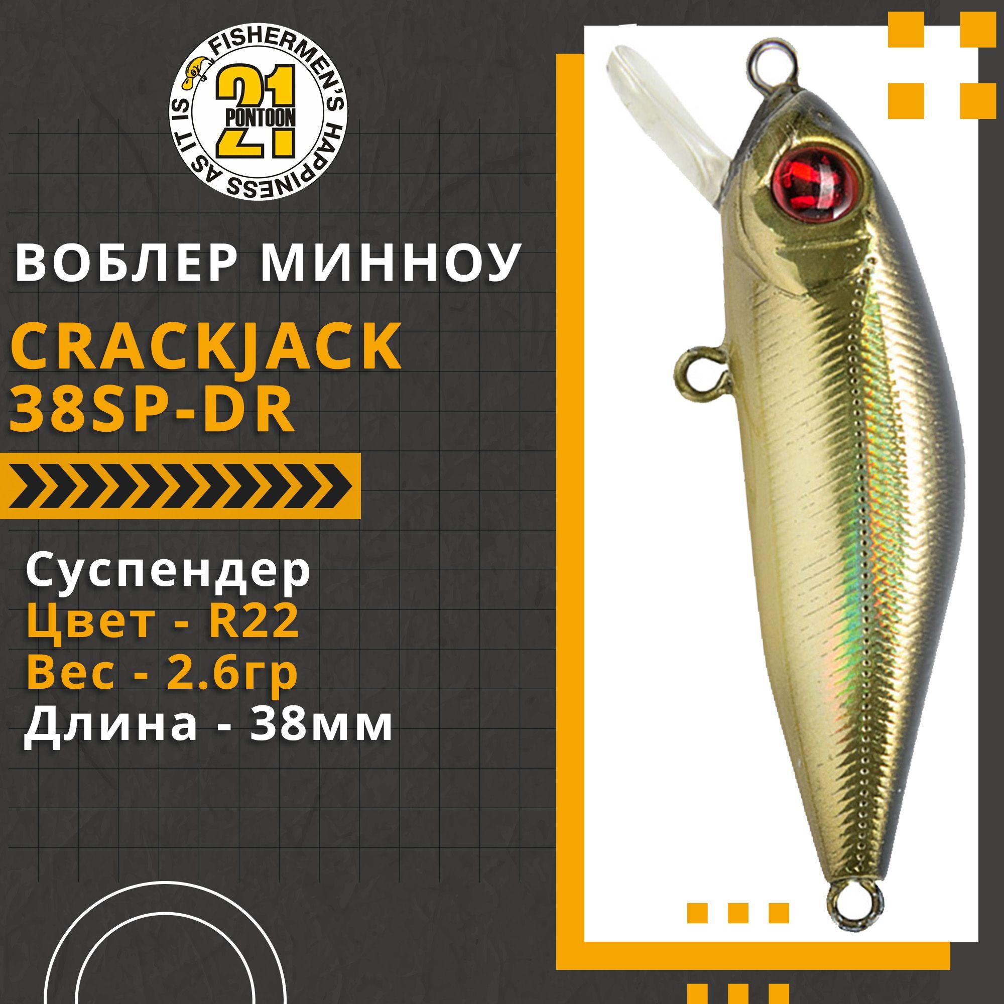 Pontoon21 CrackJack 38 появился на прилавках магазинов в 2009 году и быстро стал популярным у поклонников ультралегкого спиннинга. Благодаря двум степеням плавучести и трем вариантам заглубления этот воблер может применяться в различных условиях наших водоемов. На заросших травой или кувшинками мелководьях озер и водохранилищ этот малыш привлекает красноперку, окуня и щучку. На речных перекатах его не пропустят голавль, судак, окунь или жерех. Глубоководные модели помогут обловить ближнюю бровку или небольшой приямок. Среди его трофеев нередки чехонь, язь, карась. На береговых соревнованиях по ловле хищника спортсмены успешно применяют его для ловли форели и гольца, частенько попадаются хариус и усач.
