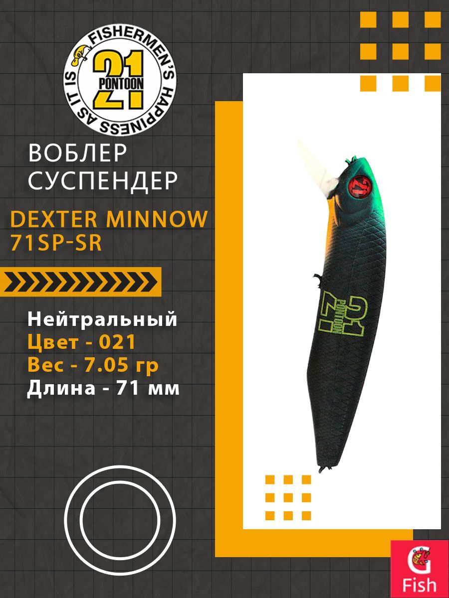 Вместо специально сконструированных грузов, использованных в тонущей версии, в «грузовые камеры» Dexter Minnow с нейтральной плавучестью помещены 4 металлических шара (по 2 в каждую). При движении воблера эти шарики могут смещаться на доли миллиметра и издают при этом лёгкий низкочастотный звук.