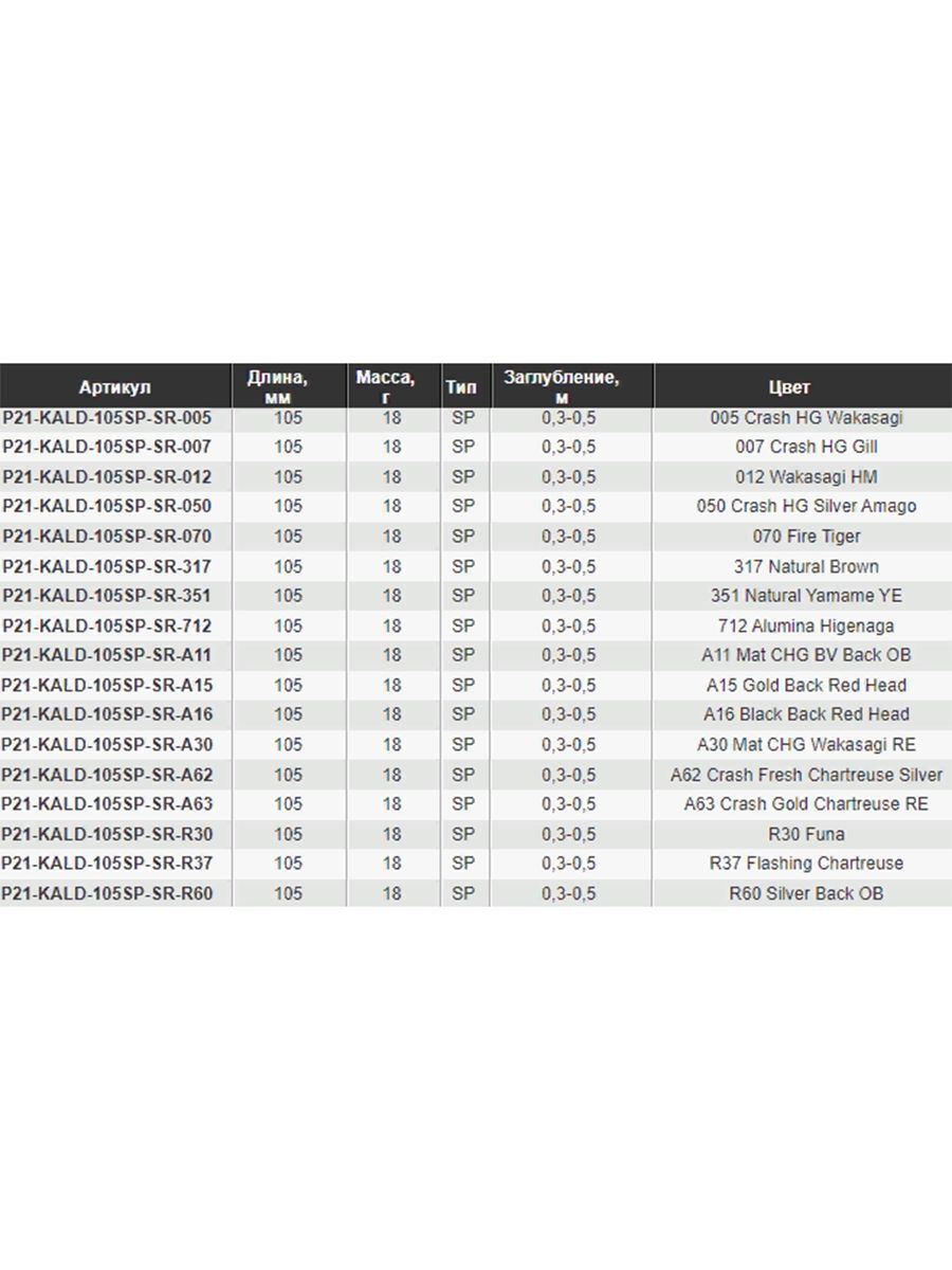 Характеристики воблеров Pontoon21 Kalikana Dun: