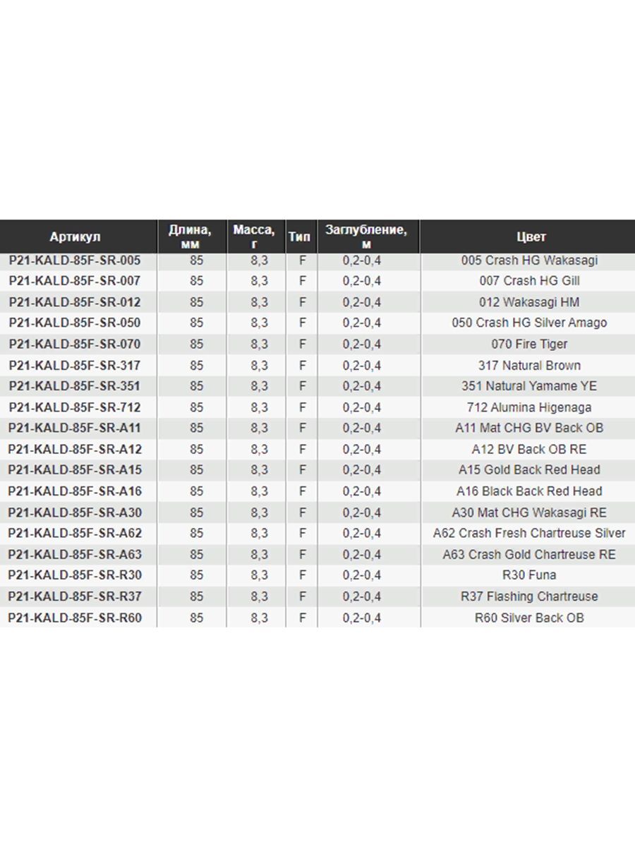 Характеристики воблеров Pontoon21 Kalikana Dun:
