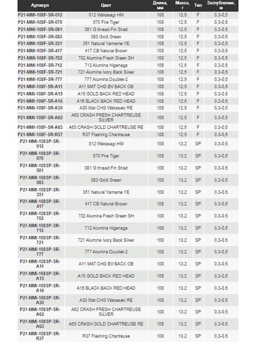 Характеристики воблеров Pontoon21 Marionette Minnow: