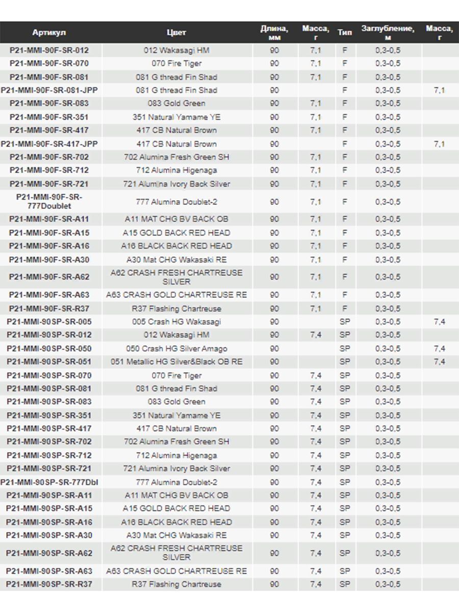 Характеристики воблеров Pontoon21 Marionette Minnow: