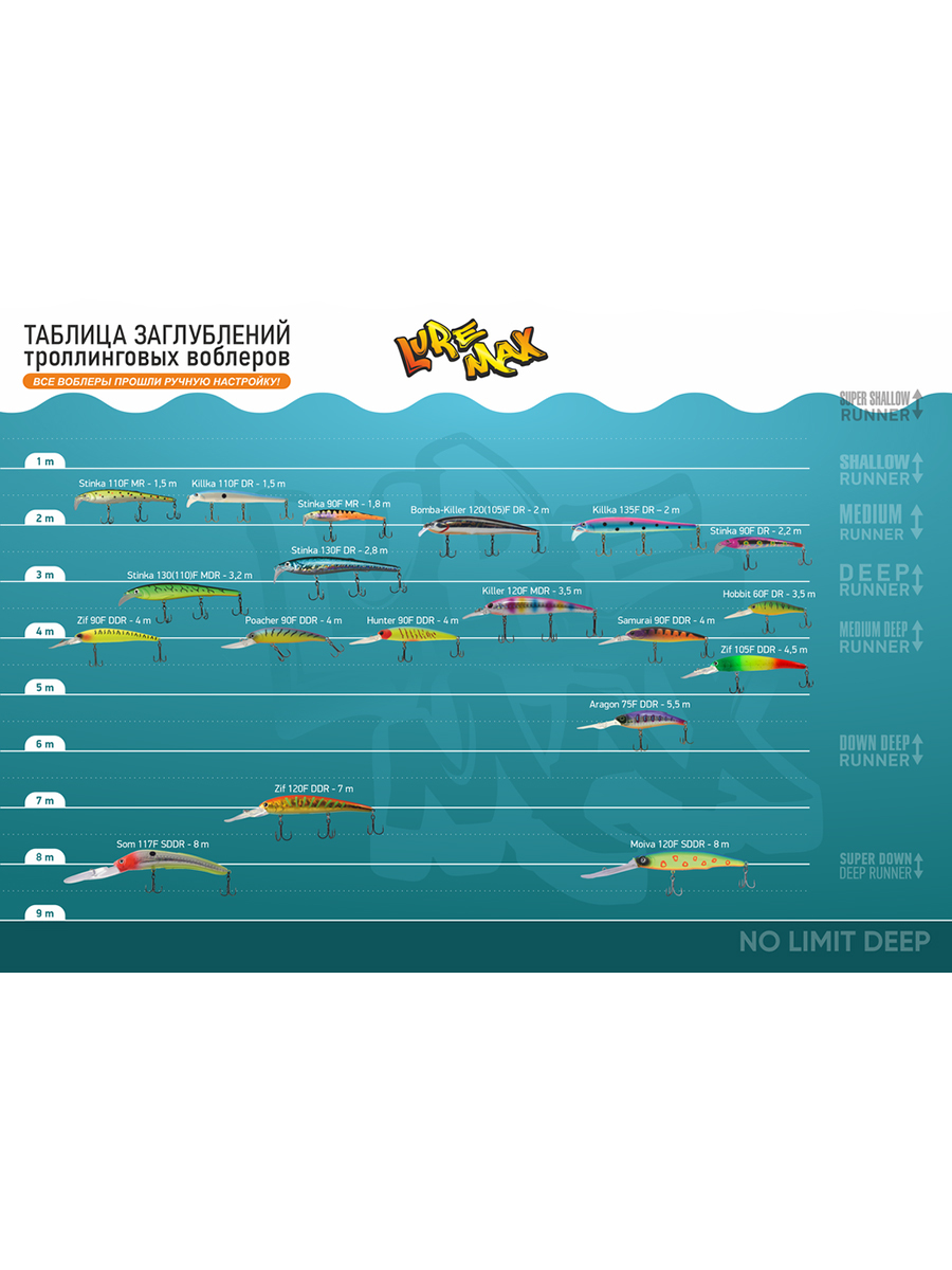 Вся цветовая гамма LureMax разрабатывалась при непосредственном участии российских ихтиологов специально для местных видов рыб. Приманки светятся в ультрафиолете, что повышает их заметность для хищника в условиях низкой освещенности.