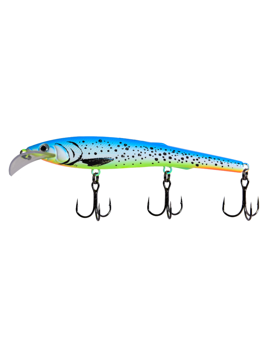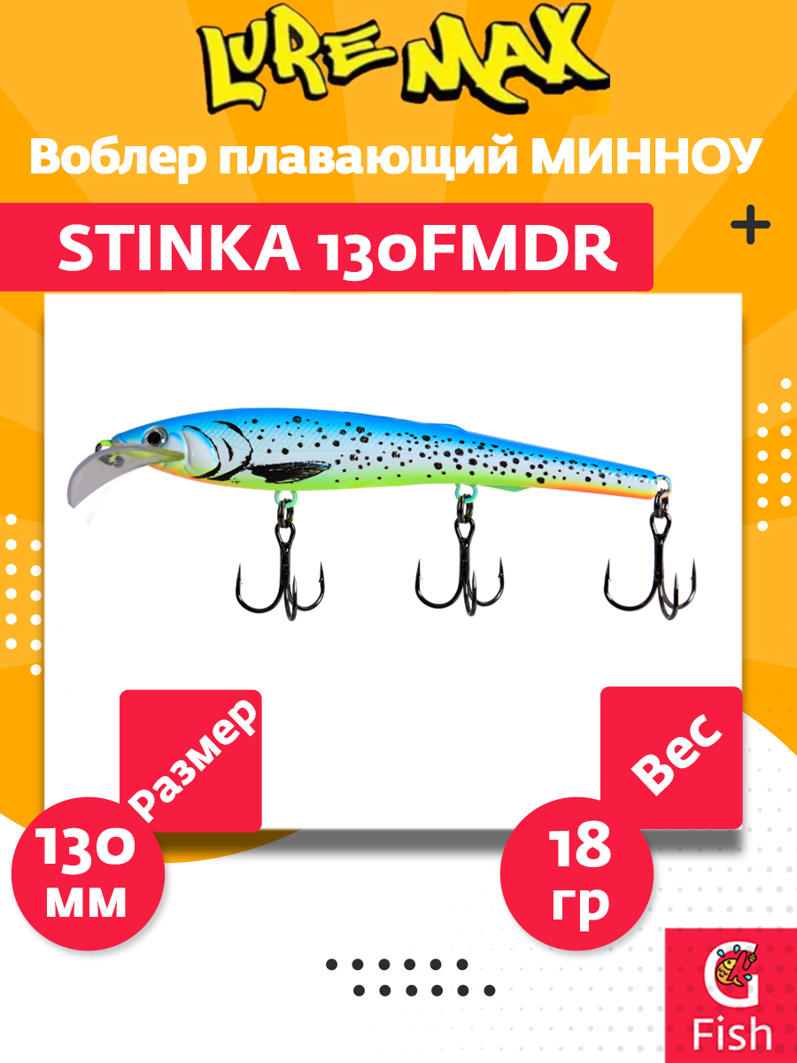 Воблер с седловидной лопаткой специально разработан для троллинга судака, озерной кумжи и лосося. Благодаря форме носовой лопасти и специальной балансировке, Stinka при проводке время от времени совершает броски в сторону, что провоцирует лососевых рыб на поклевку. Воблер «тихий» и не настораживает рыбу стуком металлических шариков, что бывает особенно важно при ловле осторожной рыбы. Приманка продемонстрировала хорошие результаты на водоемах Северо-Запада России. У модели 90FDR рекомендуемая скорость проводки 3,4 км/ч.