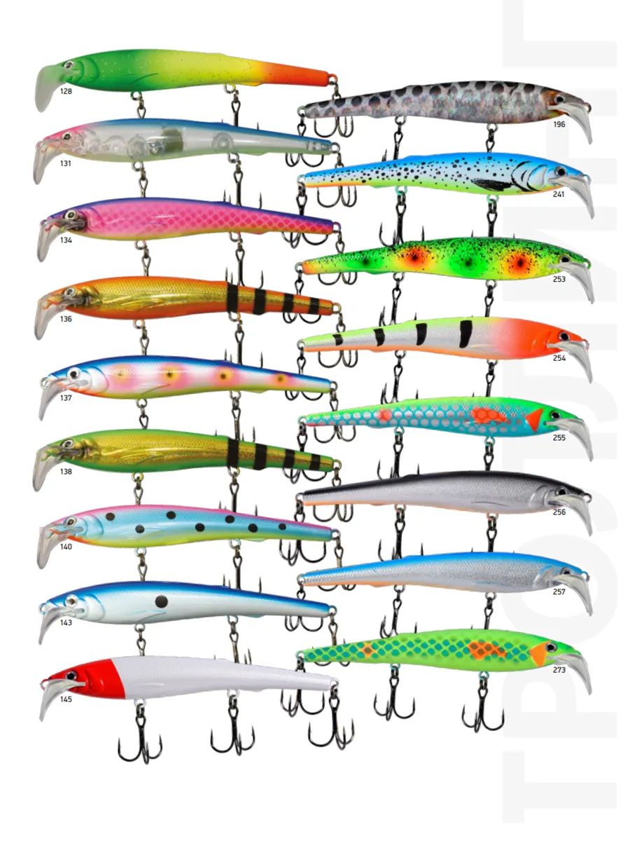 Широкая цветовая гамма, включающая как естественные – «пищевые», так и провоцирующие – «кислотные» расцветки, даёт возможность подобрать подходящую окраску воблера STINKA для любых условий освещенности и прозрачности воды на водоеме.