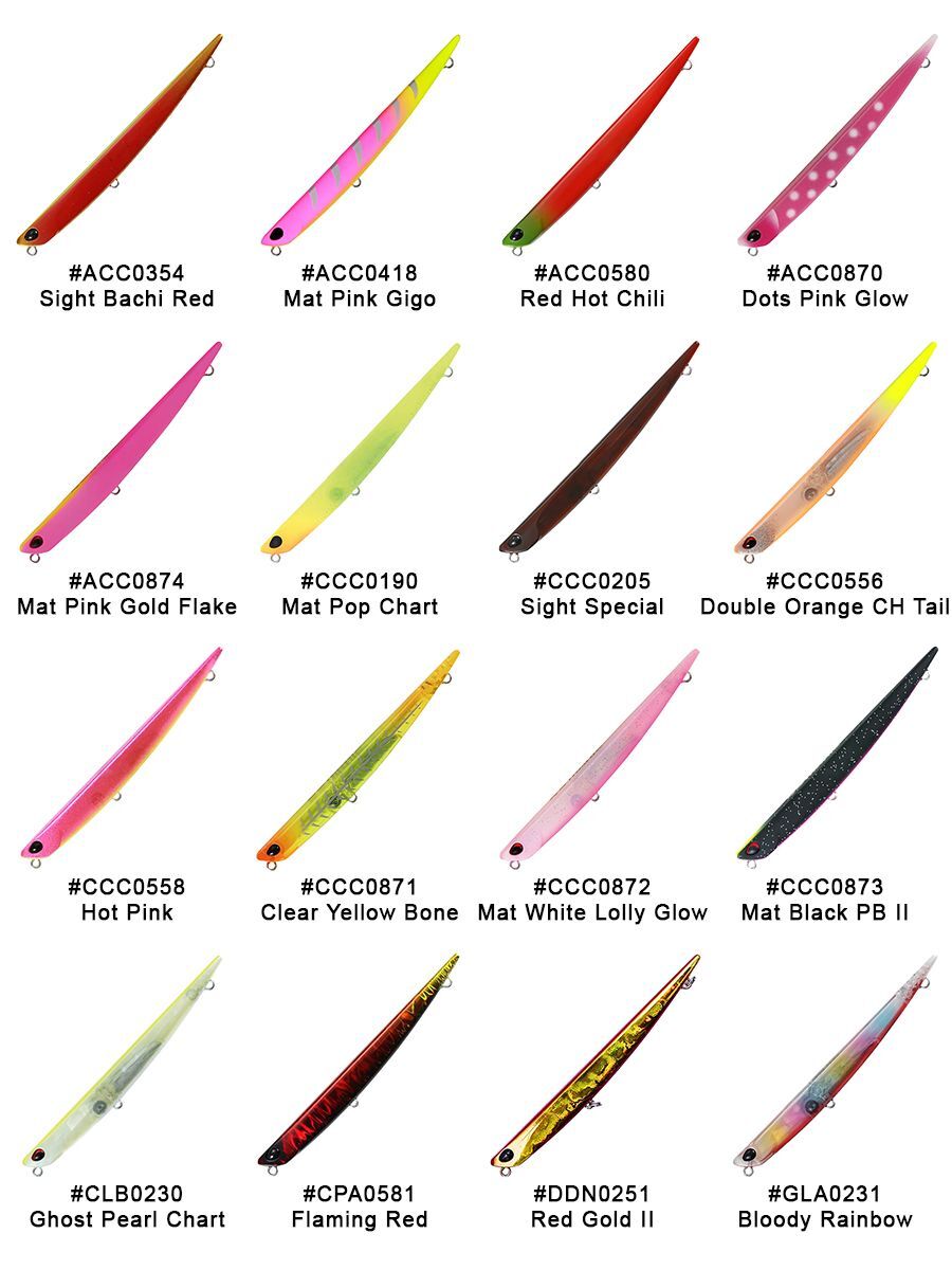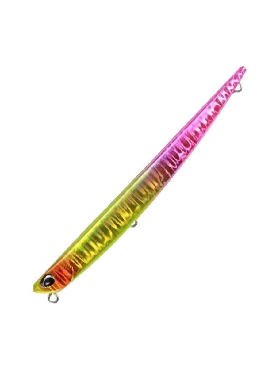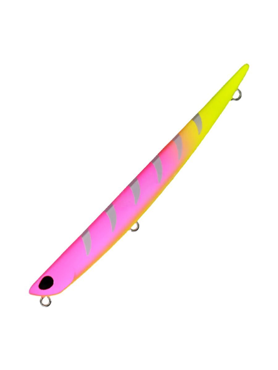 Отличительной особенностью модели является узкое, прогонистое тело, которое благодаря скошенной носовой части позволяет ей двигаться подповерхностно, несмотря на отрицательную плавучесть. Кроме того, выверенная форма и идеальный баланс наделяют ее отличными полетными качествами. С этой приманкой можно легко облавливать обширные площади как на море, так и в пресных водоемах.