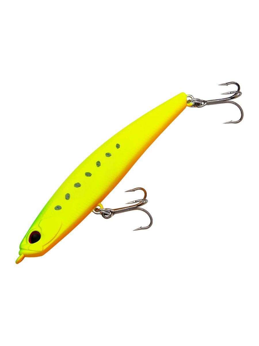 Благодаря своей форме и увеличенному весу, воблер обладает отличными полетными характеристиками, что позволяет использовать его в охоте на осторожных рыб, которые не подпускают рыболова на близкое расстояние.